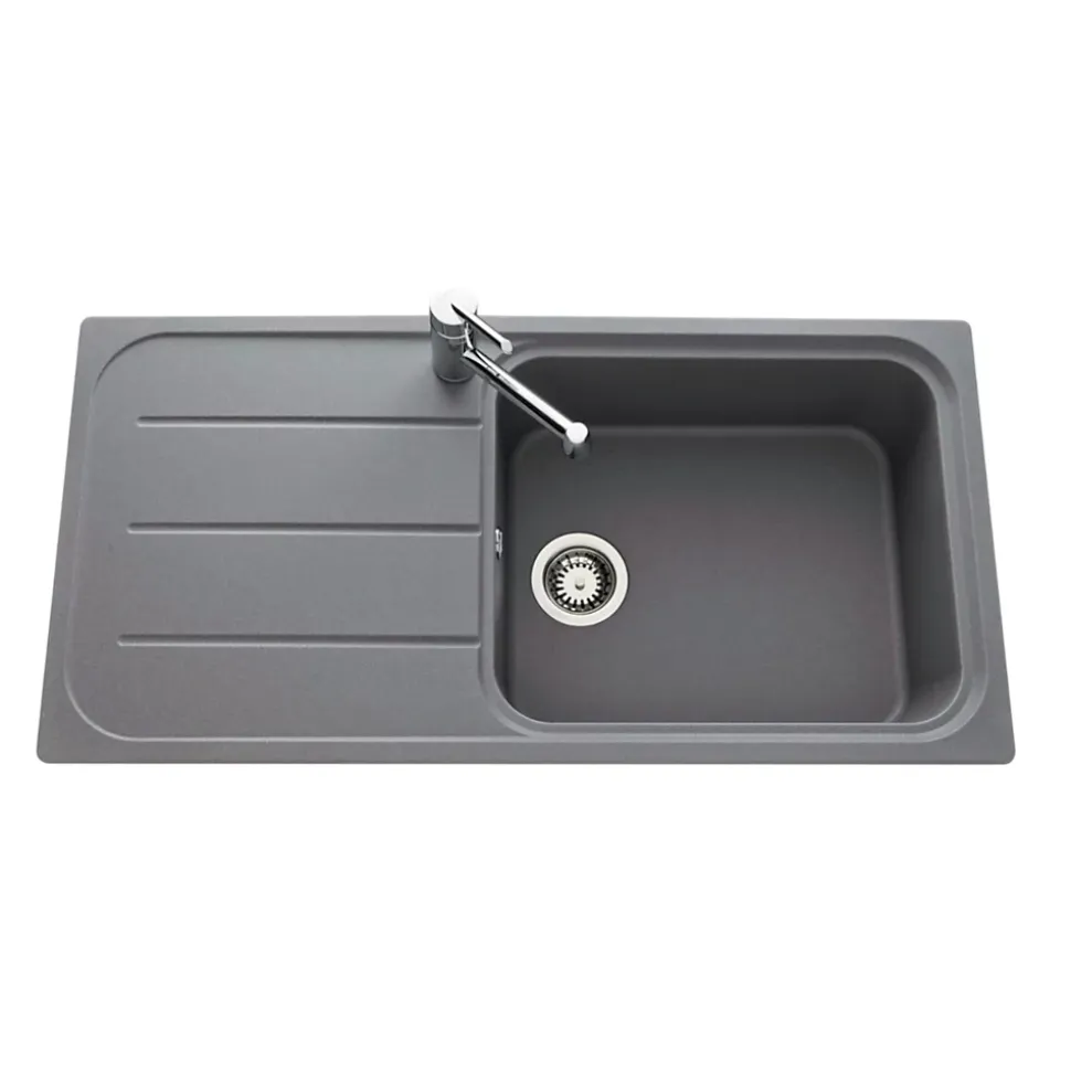 POINTS FORTS : • Évier encastrable 100×50 cm •• Evier vidage manuel •• Meuble sous évier 80 cm minimum •• Évier réversible CARACTÉRISTIQUES : • Équipements inclus : bonde(s), siphon, trop plein, tuyaux d’évacuation • Marque : Ewi • Matériau : Granit • Type de pose : à encastrer • Positionnement égouttoir : réversible • Coloris : Gris • Emplacement robinetterie : pré-marqué • Nombre de bacs : 1 bac • Poids net (Kg) : 12.74 • Trop plein : oui • Sous-meuble : 80 cm • Longueur (mm) : 1000 • Largeur (mm) : 500 • Longueur d’encastrement (mm) : 984 • Largeur d’encastrement (mm) : 484 • Grande dimension cuve 1 (mm) : 490 • Petite dimension cuve 1 (mm) : 410 • Profondeur cuve 1 (mm) : 207 • Diamètre bonde cuve 1 (mm) : 90 • Grande dimension cuve 2 (mm) : non disponible • Petite dimension cuve 2 (mm) : non disponible • Profondeur cuve 2 (mm) : non disponible • Diamètre bonde cuve 2 (mm) : non disponible • Bon à savoir : ce produit ne présente pas de spécificités supplémentaires • Vidage : manuel • Référence vidage : le vidage est déjà inclus