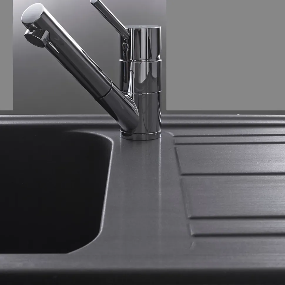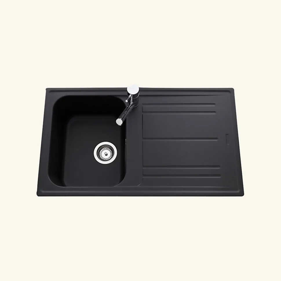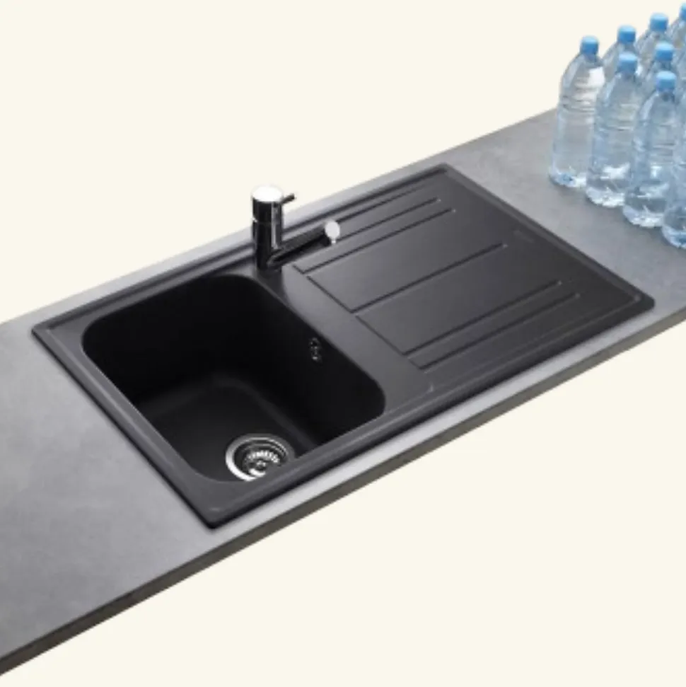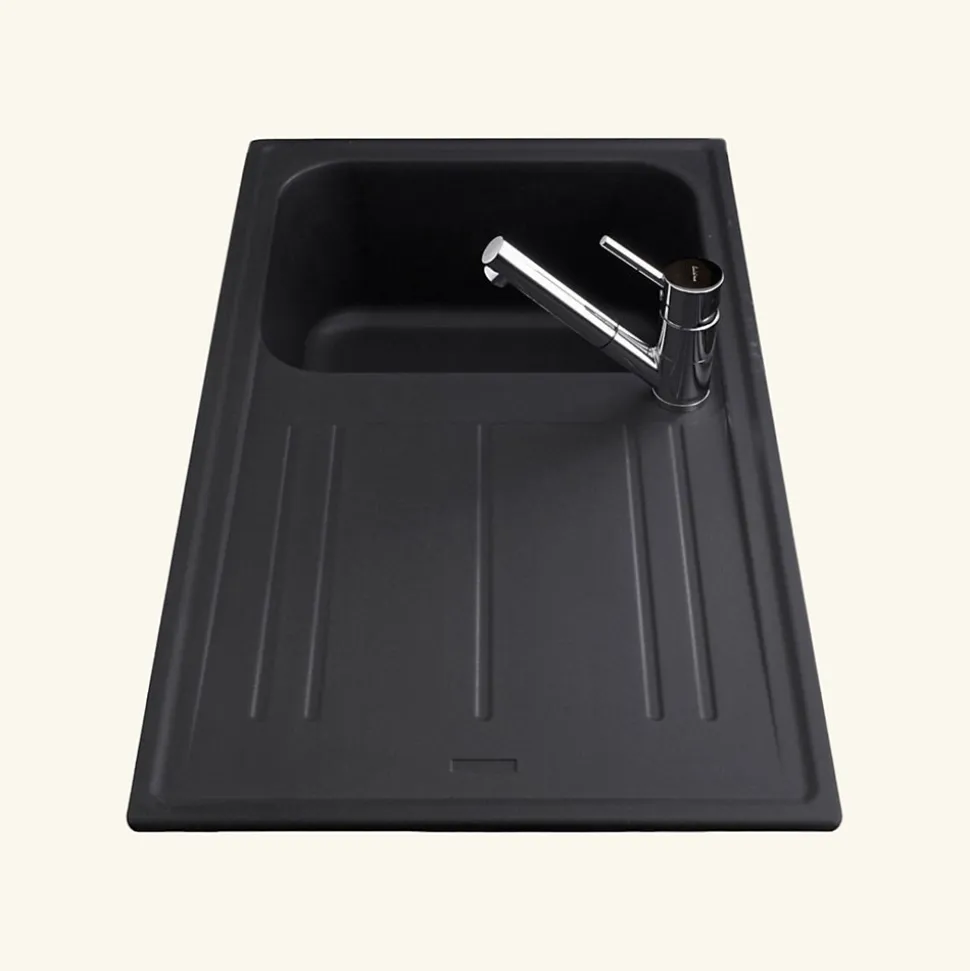 POINTS FORTS : • Évier encastrable 86×50 cm • • Evier vidage manuel • • Meuble sous évier 45 cm minimum • • Évier réversible CARACTÉRISTIQUES : • Équipements inclus : bonde(s), trop plein, tuyaux d’évacuation • Marque : Ewi • Matériau : Granit • Type de pose : à encastrer • Positionnement égouttoir : réversible • Coloris : Noir • Emplacement robinetterie : pré-marqué • Nombre de bacs : 1 bac • Poids net (Kg) : 12.04 • Trop plein : oui • Sous-meuble : 45 cm • Longueur (mm) : 860 • Largeur (mm) : 500 • Longueur d’encastrement (mm) : 840 • Largeur d’encastrement (mm) : 480 • Grande dimension cuve 1 (mm) : 417 • Petite dimension cuve 1 (mm) : 328 • Profondeur cuve 1 (mm) : 200 • Diamètre bonde cuve 1 (mm) : 90 • Grande dimension cuve 2 (mm) : non disponible • Petite dimension cuve 2 (mm) : non disponible • Profondeur cuve 2 (mm) : non disponible • Diamètre bonde cuve 2 (mm) : non disponible • Bon à savoir : ce produit ne présente pas de spécificités supplémentaires • Vidage : manuel • Référence vidage : le vidage est déjà inclus