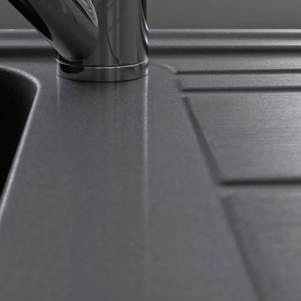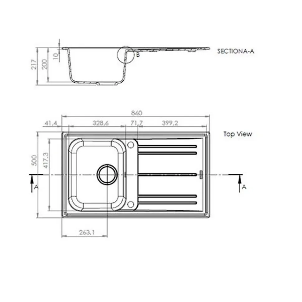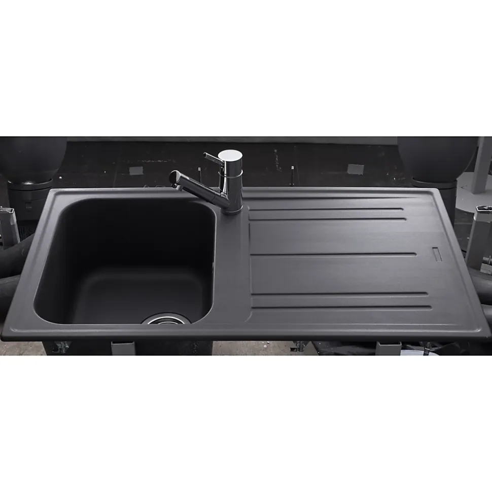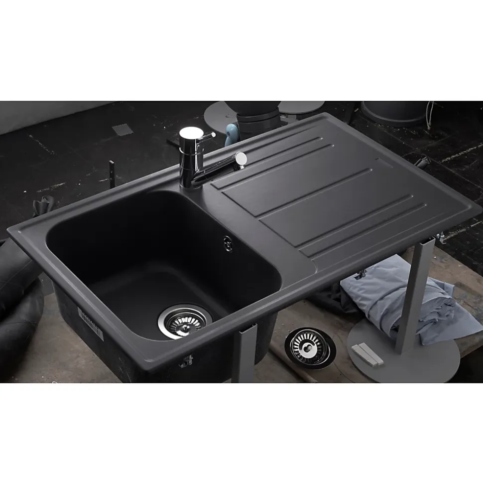 POINTS FORTS : • Évier encastrable 86×50 cm • • Evier vidage manuel • • Meuble sous évier 45 cm minimum • • Évier réversible CARACTÉRISTIQUES : • Équipements inclus : bonde(s), trop plein, tuyaux d’évacuation • Marque : Ewi • Matériau : Granit • Type de pose : à encastrer • Positionnement égouttoir : réversible • Coloris : Noir • Emplacement robinetterie : pré-marqué • Nombre de bacs : 1 bac • Poids net (Kg) : 12.04 • Trop plein : oui • Sous-meuble : 45 cm • Longueur (mm) : 860 • Largeur (mm) : 500 • Longueur d’encastrement (mm) : 840 • Largeur d’encastrement (mm) : 480 • Grande dimension cuve 1 (mm) : 417 • Petite dimension cuve 1 (mm) : 328 • Profondeur cuve 1 (mm) : 200 • Diamètre bonde cuve 1 (mm) : 90 • Grande dimension cuve 2 (mm) : non disponible • Petite dimension cuve 2 (mm) : non disponible • Profondeur cuve 2 (mm) : non disponible • Diamètre bonde cuve 2 (mm) : non disponible • Bon à savoir : ce produit ne présente pas de spécificités supplémentaires • Vidage : manuel • Référence vidage : le vidage est déjà inclus