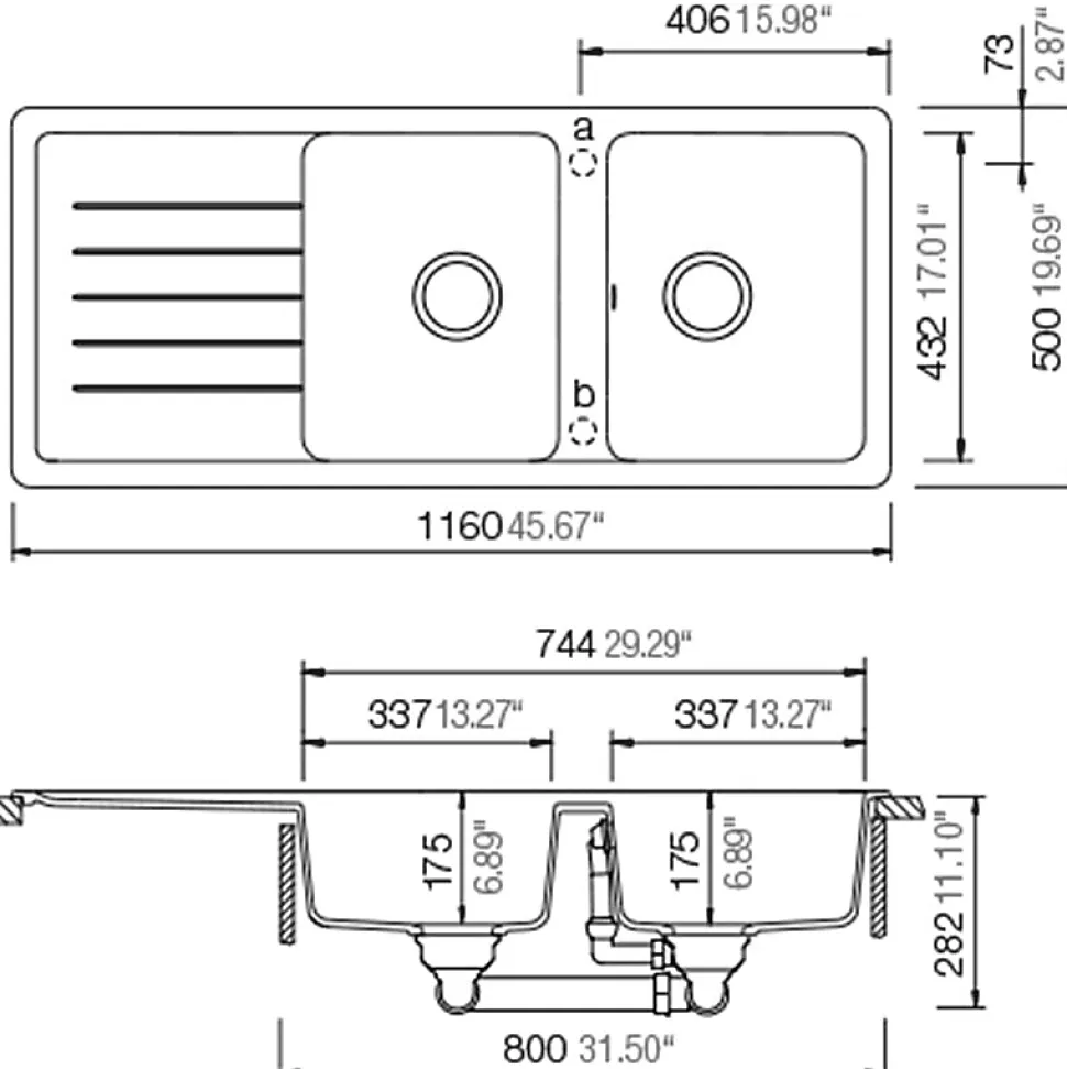 - Évier encastrable 116×50 cm