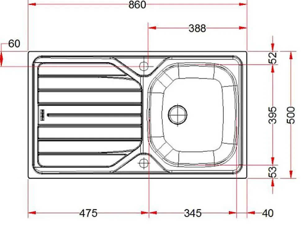 - Égouttoir réversible — peut être monté à gauche ou à droite pour une installation flexible.