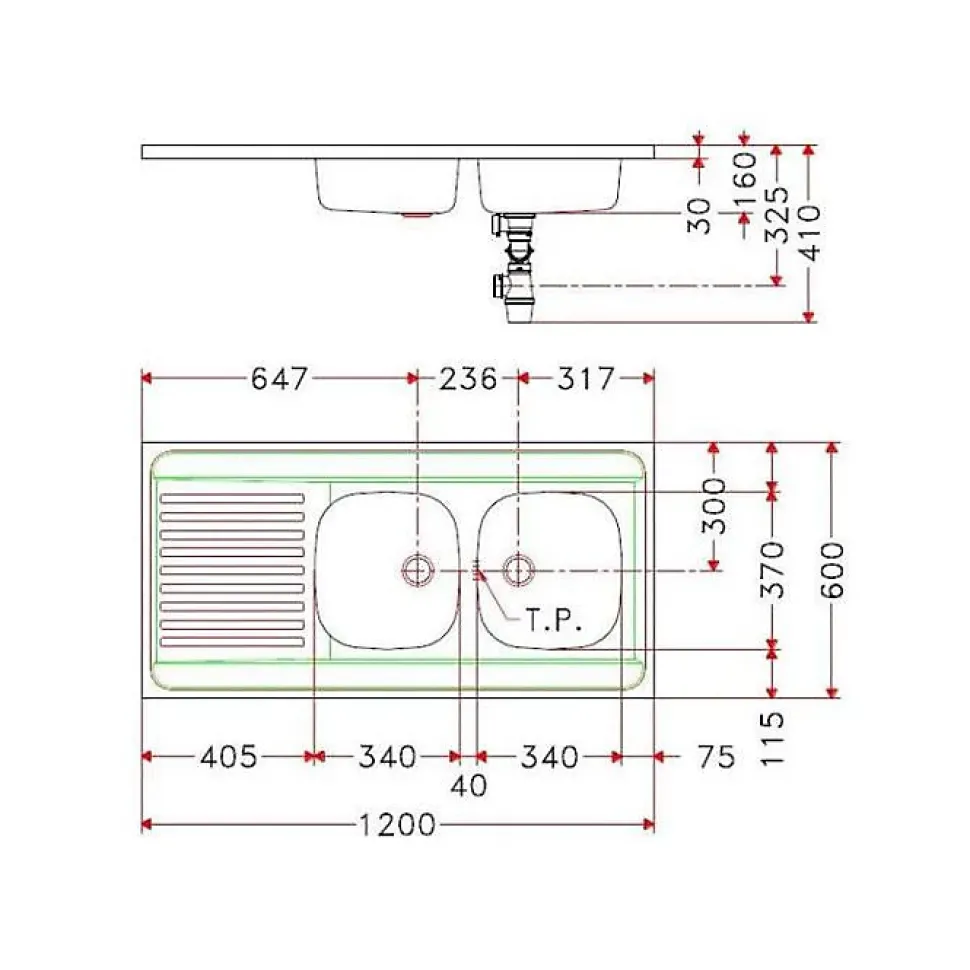 – Evier en inox 18/10, 2 bacs 1 égouttoir – Excellente résistance aux températures élevées- A poser- Non percé- Réversible- 1 cadrage bois- Pattes de fixations fournies- Bonde manuelle ø 70 mm à bouchon chaînette et siphon Dimensions et Poids: – Longueur: 120 ou 140 cm selon le modèle- Largeur: 60 cm- Poids: de 6,6 à 7,65 kg selon le modèle Garantie: 2 ans contre vices de fabrication, hors pièces d’usure.