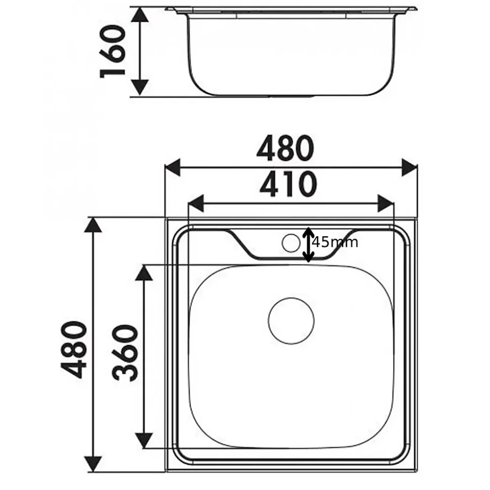 POINTS FORTS : • Évier encastrable 48×48 cm • • Meuble sous évier 50 cm minimum• • Evier vidage manuel • • Évier sans égouttoir CARACTÉRISTIQUES : • Équipements inclus : bonde(s), siphon, trop plein, tuyaux d’évacuation • Marque : Ewi • Matériau : Inox • Type de pose : à encastrer • Positionnement égouttoir : sans égouttoir • Coloris : Inox • Emplacement robinetterie : percé • Nombre de bacs : 1 bac • Poids net (Kg) : 1.31 • Trop plein : oui • Sous-meuble : 50 cm • Longueur (mm) : 480 • Largeur (mm) : 480 • Longueur d’encastrement (mm) : 460 • Largeur d’encastrement (mm) : 460 • Grande dimension cuve 1 (mm) : 410 • Petite dimension cuve 1 (mm) : 360 • Profondeur cuve 1 (mm) : 160 • Diamètre bonde cuve 1 (mm) : 90 • Grande dimension cuve 2 (mm) : non disponible • Petite dimension cuve 2 (mm) : non disponible • Profondeur cuve 2 (mm) : non disponible • Diamètre bonde cuve 2 (mm) : non disponible • Bon à savoir : ce produit ne présente pas de spécificités supplémentaires • Vidage : manuel • Référence vidage : le vidage est déjà inclus