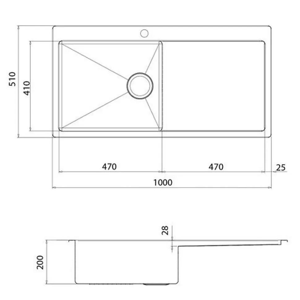 POINTS FORTS : • Évier encastrable 100×51 cm •• Meuble sous évier 60 cm minimum•• CUIPD125 (ean 3663019049599) à commander•• Évier non réversible, vidage manuel sans siphon CARACTÉRISTIQUES : • Équipements inclus : bonde(s), trop plein, tuyaux d’évacuation • Marque : Helika • Matériau : Inox • Type de pose : à encastrer • Positionnement égouttoir : droite • Coloris : Inox • Emplacement robinetterie : percé • Nombre de bacs : 1 bac • Poids net (Kg) : 9.8 • Trop plein : oui • Sous-meuble : 60 cm • Longueur (mm) : 1000 • Largeur (mm) : 510 • Longueur d’encastrement (mm) : 980 • Largeur d’encastrement (mm) : 500 • Grande dimension cuve 1 (mm) : 470 • Petite dimension cuve 1 (mm) : 410 • Profondeur cuve 1 (mm) : 200 • Diamètre bonde cuve 1 (mm) : 90 • Grande dimension cuve 2 (mm) : non disponible • Petite dimension cuve 2 (mm) : non disponible • Profondeur cuve 2 (mm) : non disponible • Diamètre bonde cuve 2 (mm) : non disponible • Bon à savoir : Siphon CUIPD125 (ean 3663019049599) à commander séparément • Vidage : livré sans système de vidage • Référence vidage : CUIPD125 (ean 3663019049599) à commander séparément