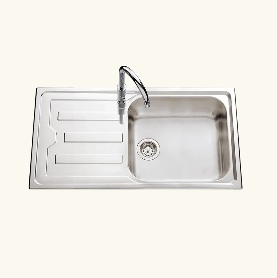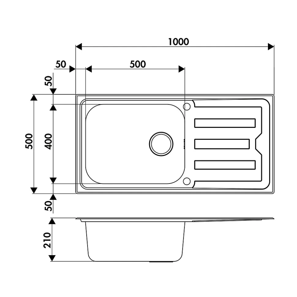 POINTS FORTS : CARACTÉRISTIQUES : • Équipements inclus : bonde(s), siphon, trop plein, tuyaux d’évacuation • Marque : sans marque • Matériau : Inox • Type de pose : à encastrer • Positionnement égouttoir : réversible • Coloris : Inox • Emplacement robinetterie : non percé • Nombre de bacs : 1 bac • Poids net (Kg) : 4.9 • Trop plein : oui • Sous-meuble : 80 cm • Longueur (mm) : 1000 • Largeur (mm) : 500 • Longueur d’encastrement (mm) : 980 • Largeur d’encastrement (mm) : 480 • Grande dimension cuve 1 (mm) : 500 • Petite dimension cuve 1 (mm) : 400 • Profondeur cuve 1 (mm) : 210 • Diamètre bonde cuve 1 (mm) : 90 • Grande dimension cuve 2 (mm) : non disponible • Petite dimension cuve 2 (mm) : non disponible • Profondeur cuve 2 (mm) : non disponible • Diamètre bonde cuve 2 (mm) : non disponible • Bon à savoir : Epaisseur de l’inox : 0,7 mm. Pas de trou prépercé, perçage à prévoir. • Vidage : manuel • Référence vidage : le vidage est déjà inclus