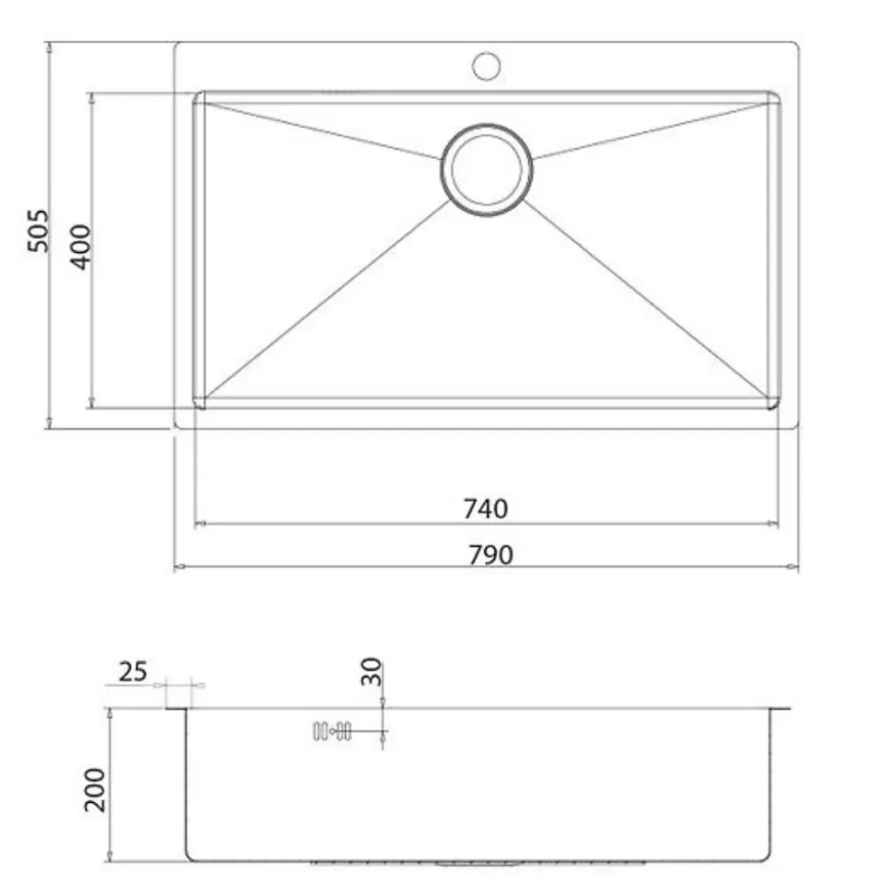 POINTS FORTS : • Évier encastrable 79×50.5 cm •• Meuble sous évier 80 cm minimum•• CUIPD231 (ean 3663019049582) + CUIPD125 (ean 3663019049599) à commander•• Évier sans égouttoir, vidage et siphon non inclus CARACTÉRISTIQUES : • Équipements inclus : livré sans équipement • Marque : Helika • Matériau : Inox • Type de pose : à encastrer • Positionnement égouttoir : sans égouttoir • Coloris : Inox • Emplacement robinetterie : percé • Nombre de bacs : 1 bac • Poids net (Kg) : 9.4 • Trop plein : oui • Sous-meuble : 80 cm • Longueur (mm) : 790 • Largeur (mm) : 505 • Longueur d’encastrement (mm) : 770 • Largeur d’encastrement (mm) : 485 • Grande dimension cuve 1 (mm) : 740 • Petite dimension cuve 1 (mm) : 400 • Profondeur cuve 1 (mm) : 200 • Diamètre bonde cuve 1 (mm) : 90 • Grande dimension cuve 2 (mm) : non disponible • Petite dimension cuve 2 (mm) : non disponible • Profondeur cuve 2 (mm) : non disponible • Diamètre bonde cuve 2 (mm) : non disponible • Bon à savoir : Vidage CUIPD231 (ean 3663019049582) et siphon CUIPD125 (ean 3663019049599) à commander séparément. • Vidage : livré sans système de vidage • Référence vidage : CUIPD231 (ean 3663019049582) et CUIPD125 (ean 3663019049599) à commander séparément