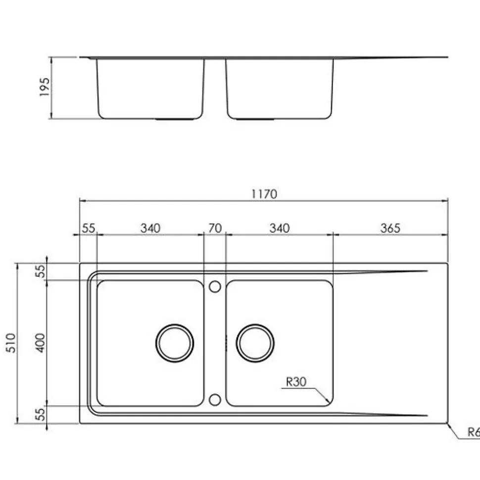 POINTS FORTS : • Évier encastrable 117×51 cm • • Meuble sous évier 90 cm minimum• • Evier vidage automatique • • Évier réversible CARACTÉRISTIQUES : • Équipements inclus : bonde(s), siphon, trop plein, tuyaux d’évacuation • Marque : Luisina • Matériau : Inox • Type de pose : à encastrer • Positionnement égouttoir : réversible • Coloris : Inox • Emplacement robinetterie : percé • Nombre de bacs : 2 bacs • Poids net (Kg) : 12.7 • Trop plein : oui • Sous-meuble : 90 cm • Longueur (mm) : 1170 • Largeur (mm) : 510 • Longueur d’encastrement (mm) : 1150 • Largeur d’encastrement (mm) : 490 • Grande dimension cuve 1 (mm) : 400 • Petite dimension cuve 1 (mm) : 340 • Profondeur cuve 1 (mm) : 195 • Diamètre bonde cuve 1 (mm) : 90 • Grande dimension cuve 2 (mm) : 400 • Petite dimension cuve 2 (mm) : 340 • Profondeur cuve 2 (mm) : 195 • Diamètre bonde cuve 2 (mm) : 90 • Bon à savoir : ce produit ne présente pas de spécificités supplémentaires • Vidage : automatique • Référence vidage : le vidage est déjà inclus