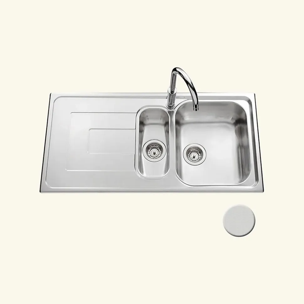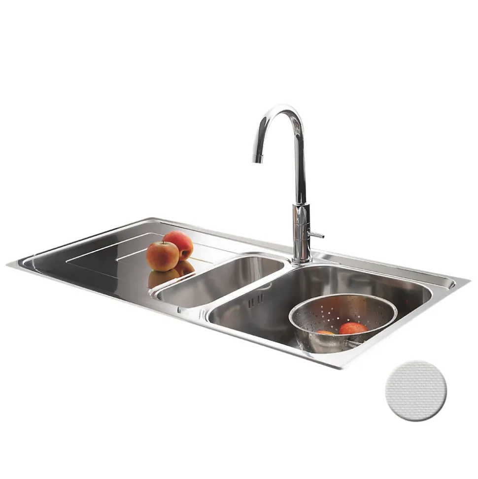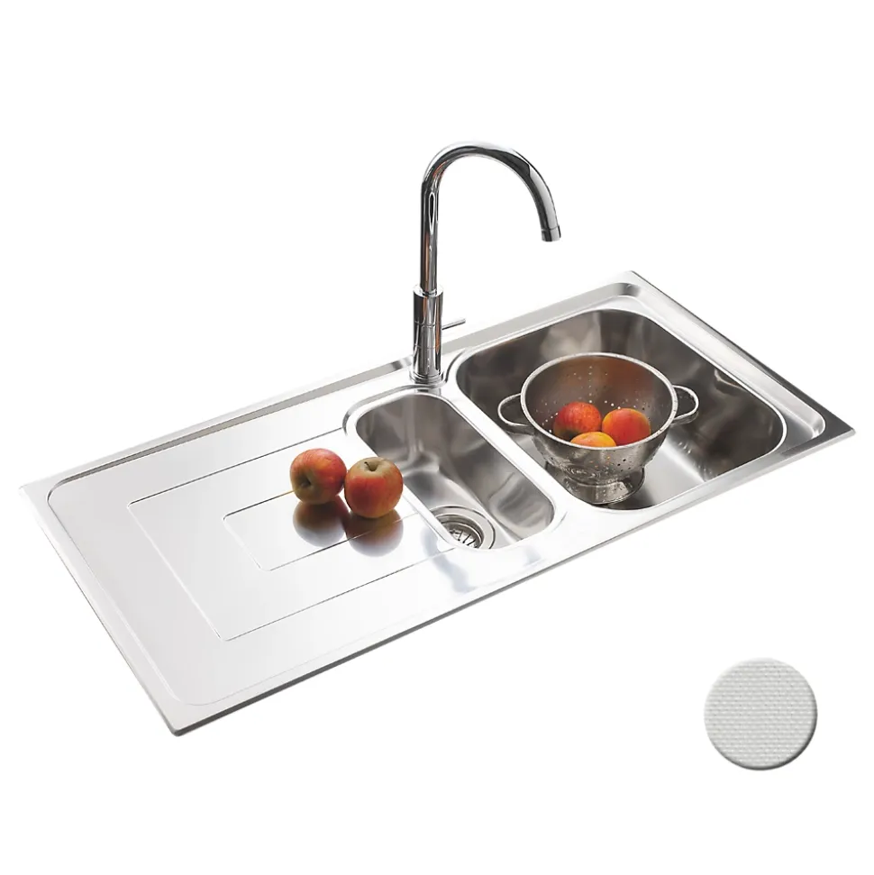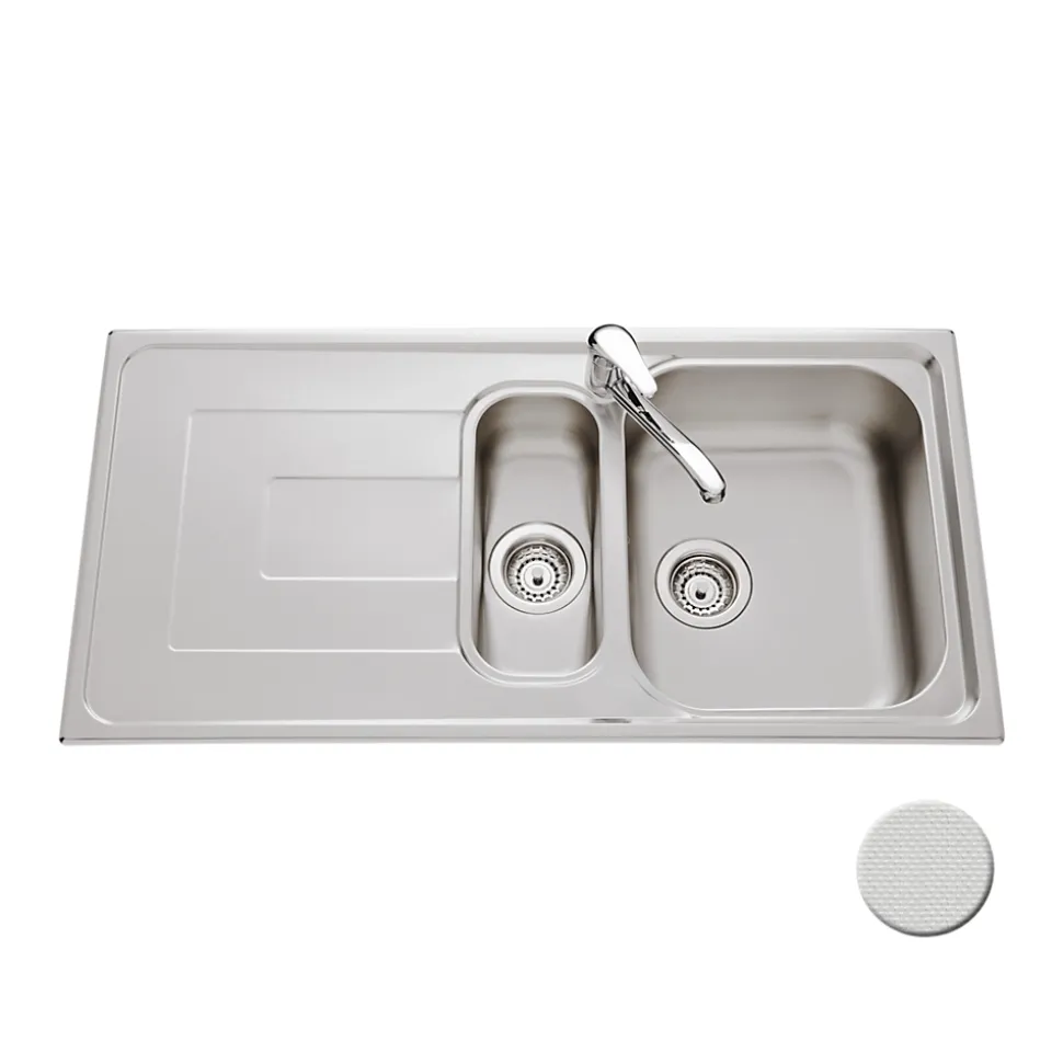 POINTS FORTS : • Évier encastrable 100×50 cm •• Meuble sous évier 60 cm minimum•• Evier vidage manuel •• Évier réversible CARACTÉRISTIQUES : • Équipements inclus : bonde(s), siphon, trop plein, tuyaux d’évacuation • Marque : Luisina • Matériau : Inox nid d’abeille • Type de pose : à encastrer • Positionnement égouttoir : réversible • Coloris : Inox nid d’abeille • Emplacement robinetterie : non percé • Nombre de bacs : 1 bac 1/2 • Poids net (Kg) : 5.5 • Trop plein : oui • Sous-meuble : 60 cm • Longueur (mm) : 1000 • Largeur (mm) : 500 • Longueur d’encastrement (mm) : 980 • Largeur d’encastrement (mm) : 480 • Grande dimension cuve 1 (mm) : 410 • Petite dimension cuve 1 (mm) : 342 • Profondeur cuve 1 (mm) : 190 • Diamètre bonde cuve 1 (mm) : 90 • Grande dimension cuve 2 (mm) : 335 • Petite dimension cuve 2 (mm) : 145 • Profondeur cuve 2 (mm) : 130 • Diamètre bonde cuve 2 (mm) : 90 • Bon à savoir : L’inox de cet évier mesure 1mm d’épaisseur. L’évier est équipé d’un vidage manuel gain de place. • Vidage : manuel • Référence vidage : le vidage est déjà inclus