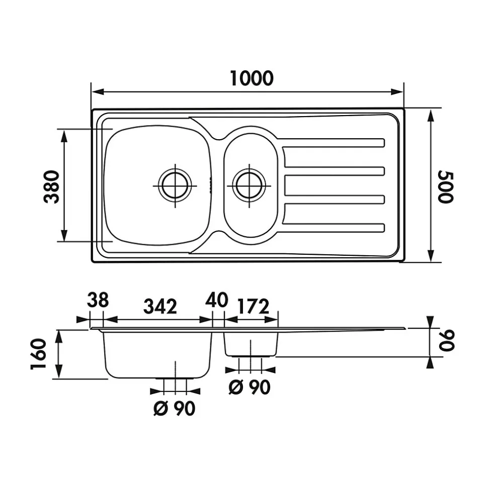 POINTS FORTS : • Évier encastrable 100×50 cm • • Meuble sous évier 60 cm minimum • • Evier vidage manuel • • Évier réversible CARACTÉRISTIQUES : • Équipements inclus : bonde(s), siphon, trop plein, tuyaux d’évacuation • Marque : Luisina • Matériau : Inox nid d’abeille • Type de pose : à encastrer • Positionnement égouttoir : réversible • Coloris : Inox nid d’abeille • Emplacement robinetterie : non percé • Nombre de bacs : 1 bac 1/2 • Poids net (Kg) : 3.74 • Trop plein : oui • Sous-meuble : 60 cm • Longueur (mm) : 1000 • Largeur (mm) : 500 • Longueur d’encastrement (mm) : 980 • Largeur d’encastrement (mm) : 480 • Grande dimension cuve 1 (mm) : 380 • Petite dimension cuve 1 (mm) : 342 • Profondeur cuve 1 (mm) : 160 • Diamètre bonde cuve 1 (mm) : 90 • Grande dimension cuve 2 (mm) : 380 • Petite dimension cuve 2 (mm) : 172 • Profondeur cuve 2 (mm) : 90 • Diamètre bonde cuve 2 (mm) : 90 • Bon à savoir : ce produit ne présente pas de spécificités supplémentaires • Vidage : manuel • Référence vidage : le vidage est déjà inclus