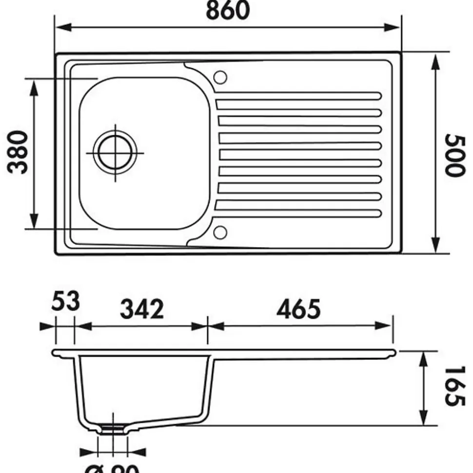 - Évier encastrable 86×50 cm