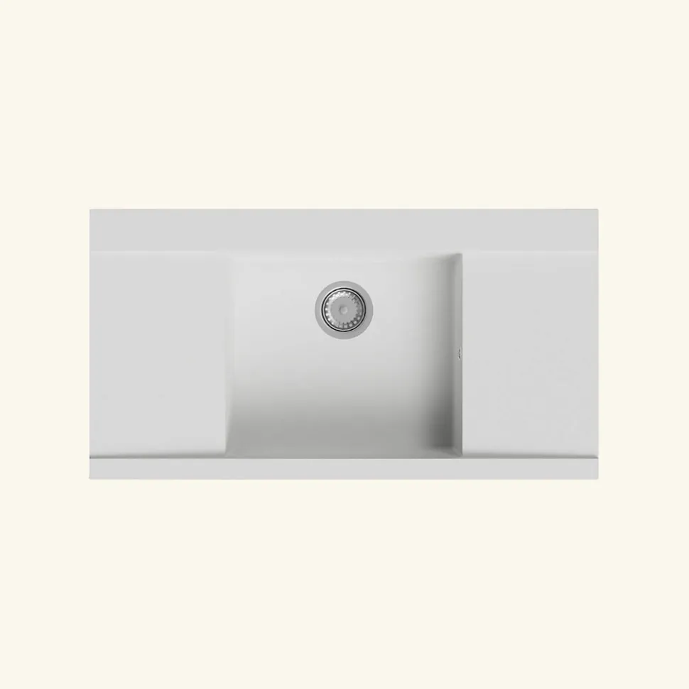 POINTS FORTS : CARACTÉRISTIQUES : • Équipements inclus : livré sans équipement • Marque : Kümbad • Matériau : Granit • Type de pose : à encastrer • Positionnement égouttoir : double • Coloris : Blanc • Emplacement robinetterie : pré-marqué • Nombre de bacs : 1 bac • Poids net (Kg) : 15.0 • Trop plein : oui • Sous-meuble : 50 cm • Longueur (mm) : 960 • Largeur (mm) : 510 • Longueur d’encastrement (mm) : 940 • Largeur d’encastrement (mm) : 490 • Grande dimension cuve 1 (mm) : 450 • Petite dimension cuve 1 (mm) : 390 • Profondeur cuve 1 (mm) : 180 • Diamètre bonde cuve 1 (mm) : 90 • Grande dimension cuve 2 (mm) : non disponible • Petite dimension cuve 2 (mm) : non disponible • Profondeur cuve 2 (mm) : non disponible • Diamètre bonde cuve 2 (mm) : non disponible • Bon à savoir : ce produit ne présente pas de spécificités supplémentaires • Vidage : manuel • Référence vidage : à commander séparémment