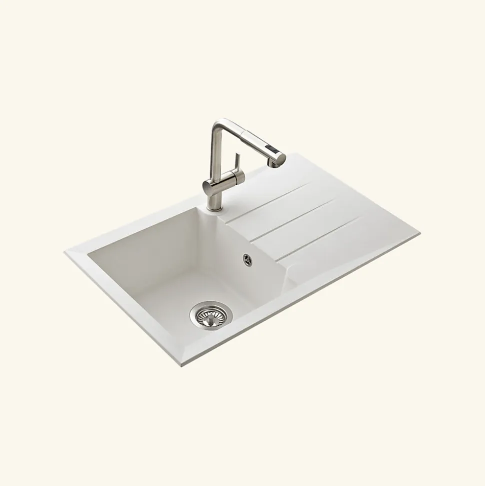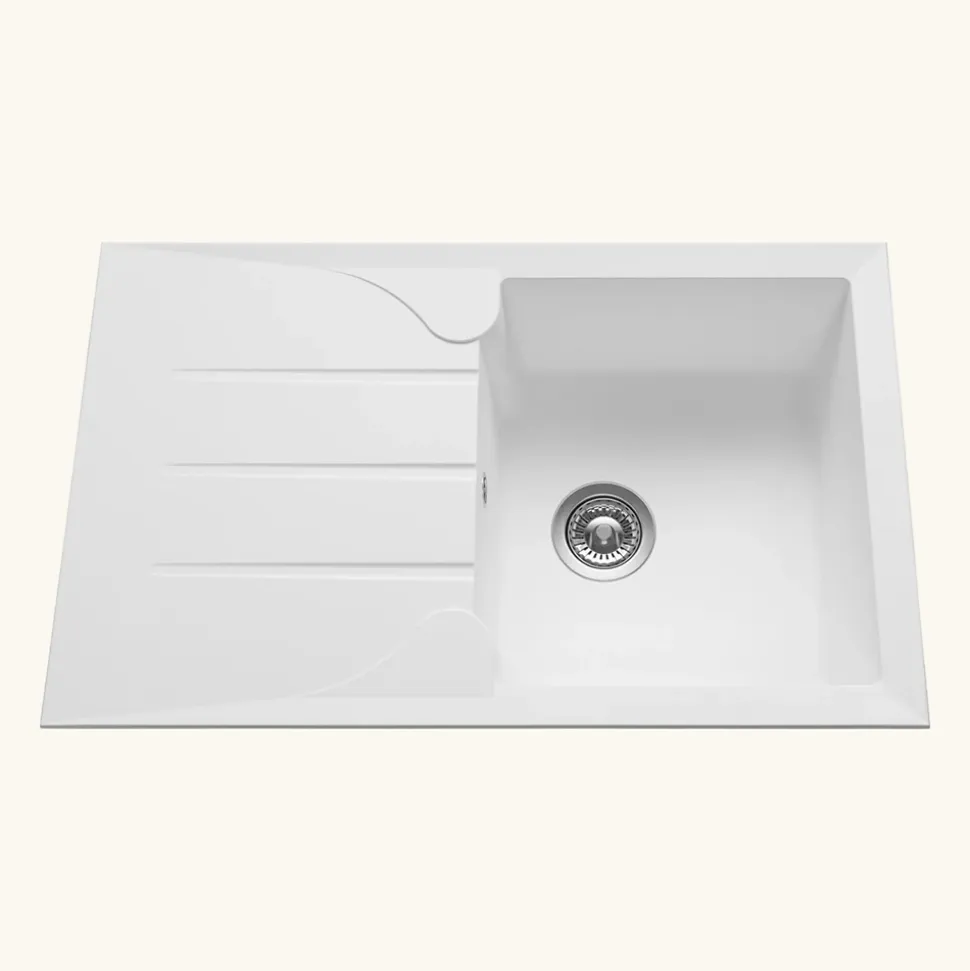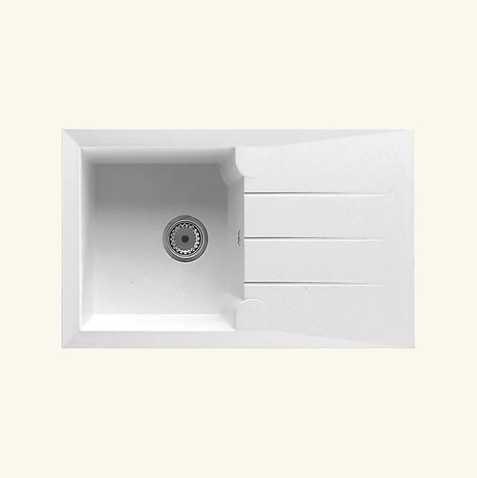POINTS FORTS : • Évier encastrable 81×50 cm •• Meuble sous évier 50 cm minimum •• Evier vidage manuel •• Évier réversible fabriqué en France CARACTÉRISTIQUES : • Équipements inclus : bonde(s), siphon, trop plein, tuyaux d’évacuation • Marque : Kümbad • Matériau : Résine • Type de pose : à encastrer • Positionnement égouttoir : réversible • Coloris : Blanc • Emplacement robinetterie : non percé • Nombre de bacs : 1 bac • Poids net (Kg) : 8.17 • Trop plein : oui • Sous-meuble : 50 cm • Longueur (mm) : 810 • Largeur (mm) : 500 • Longueur d’encastrement (mm) : 790 • Largeur d’encastrement (mm) : 480 • Grande dimension cuve 1 (mm) : 417 • Petite dimension cuve 1 (mm) : 377 • Profondeur cuve 1 (mm) : 210 • Diamètre bonde cuve 1 (mm) : 90 • Grande dimension cuve 2 (mm) : non disponible • Petite dimension cuve 2 (mm) : non disponible • Profondeur cuve 2 (mm) : non disponible • Diamètre bonde cuve 2 (mm) : non disponible • Bon à savoir : ce produit ne présente pas de spécificités supplémentaires • Vidage : manuel • Référence vidage : le vidage est déjà inclus