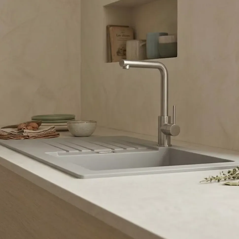POINTS FORTS : • Évier encastrable 100×50 cm •• Meuble sous évier 60 cm minimum •• Evier vidage manuel •• Évier réversible CARACTÉRISTIQUES : • Équipements inclus : bonde(s), siphon, trop plein, tuyaux d’évacuation • Marque : sans marque • Matériau : Résine • Type de pose : à encastrer • Positionnement égouttoir : réversible • Coloris : Gris • Emplacement robinetterie : non percé • Nombre de bacs : 1 bac • Poids net (Kg) : 6.76 • Trop plein : oui • Sous-meuble : 60 cm • Longueur (mm) : 1000 • Largeur (mm) : 500 • Longueur d’encastrement (mm) : 960 • Largeur d’encastrement (mm) : 460 • Grande dimension cuve 1 (mm) : 460 • Petite dimension cuve 1 (mm) : 400 • Profondeur cuve 1 (mm) : 185 • Diamètre bonde cuve 1 (mm) : 90 • Grande dimension cuve 2 (mm) : non disponible • Petite dimension cuve 2 (mm) : non disponible • Profondeur cuve 2 (mm) : non disponible • Diamètre bonde cuve 2 (mm) : non disponible • Bon à savoir : ce produit ne présente pas de spécificités supplémentaires • Vidage : manuel • Référence vidage : le vidage est déjà inclus