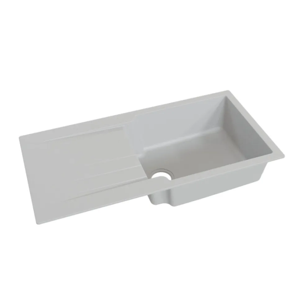 Nos cuves et éviers de cuisine RESIROC sont élaborés à partir de matériaux composites SMC-PIMC (résine polyester, fibre de verre et charges minérales compressées + recouvrement de poudres électrostatiques projetées sur le moule à chaud). Cette composition permet aux cuves RESIROC d’avoir une haute résistance aux rayures, chocs et températures élevées.Évier réversible 100 cm, grand bac avec égouttoir mouléCouleur : GrisDimension en cm : 100 x 50 cmIntérieur de la cuve : 52.5 x 43 cmEncastrement : 97,6 x 47,6 cmProfondeur de l’évier : 21 cmEvier avec trop-pleinVidage en acier inoxydable inclus Vidage manuel de la bonde panierA noter : Livré avec bonde mais sans robinetterie.Normes et labels de la plus haute qualité :Norme CE selon de règlement Européen des produits de construction Nº 305/2011Antibactérien, antivirusRésistant aux tâchesHaute résistance aux rayons UV contre le jaunissementRésistant au choc thermique et aux hautes températures (accepte une température jusqu’à 300°)Résistant aux chocs mécaniquesRésistant aux rayuresLéger et facile à manipuler et à installerPerçage facile : centres pré-marquésNettoyage facileFabrication EuropéenneRéglementations EN13310, EN274, EN695Garantie 3 ans*La garantie pour défaut de matière et/ou de fabrication est acquise à l’acheteur, pendant la durée énoncée, sous réserve que l’installation et l’utilisation du produit concerné soient conformes aux règles habituelles en la matière.