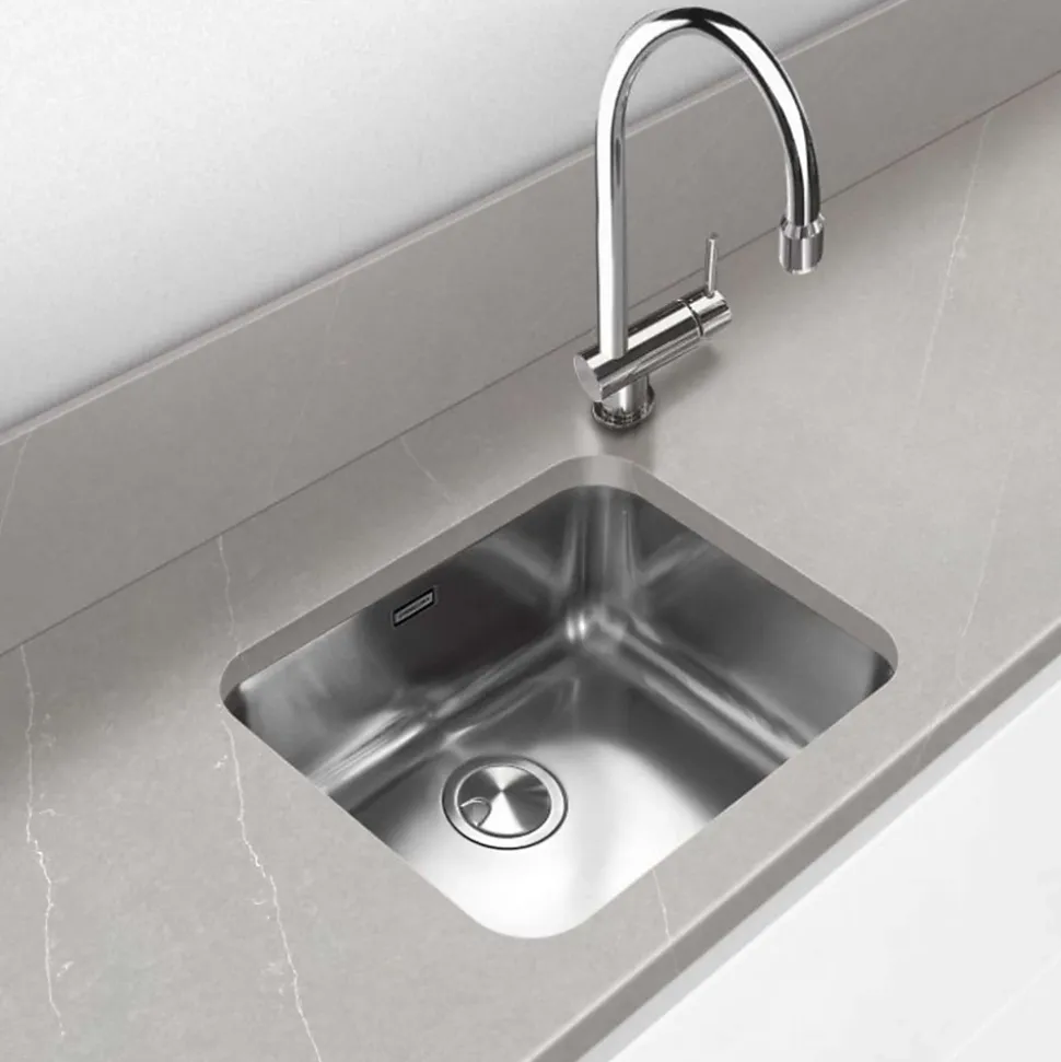 Optimisez votre cuisine avec l’évier sous-plan BM TOP 3440 BE FRÉCAN, fabriqué en acier inoxydable 18/10 pour garantir robustesse, hygiène et design moderne. Conçu pour les meubles de 40 cm, il offre un format compact idéal pour les espaces restreints tout en restant fonctionnel. Dimensions intérieures de la cuve : 341 × 401 × 180 mm (R60) Dimensions d’encastrement : 340 × 400 mm (R59,5) Dimensions totales : 377 × 437 mm Largeur minimum du meuble : 40 cm Matière : Acier inoxydable 18/10, durable et facile à nettoyer Pose : Sous-plan pour un plan de travail épuré et un entretien simplifié Accessoire fourni : Siphon gain de place inclus Marque : FRÉCANLe modèle BM TOP 34-40 BE propose une cuve compacte de 341 × 401 mm et une profondeur de 18 cm, adaptée au lavage quotidien des ustensiles tout en optimisant l’espace du meuble bas. Ses dimensions totales de 377 × 437 mm assurent une installation harmonieuse et une intégration parfaite au plan de travail. Son design contemporain et épuré s’intègre parfaitement dans toutes les cuisines modernes, garantissant fonctionnalité et esthétique avec la qualité reconnue de FRÉCAN.