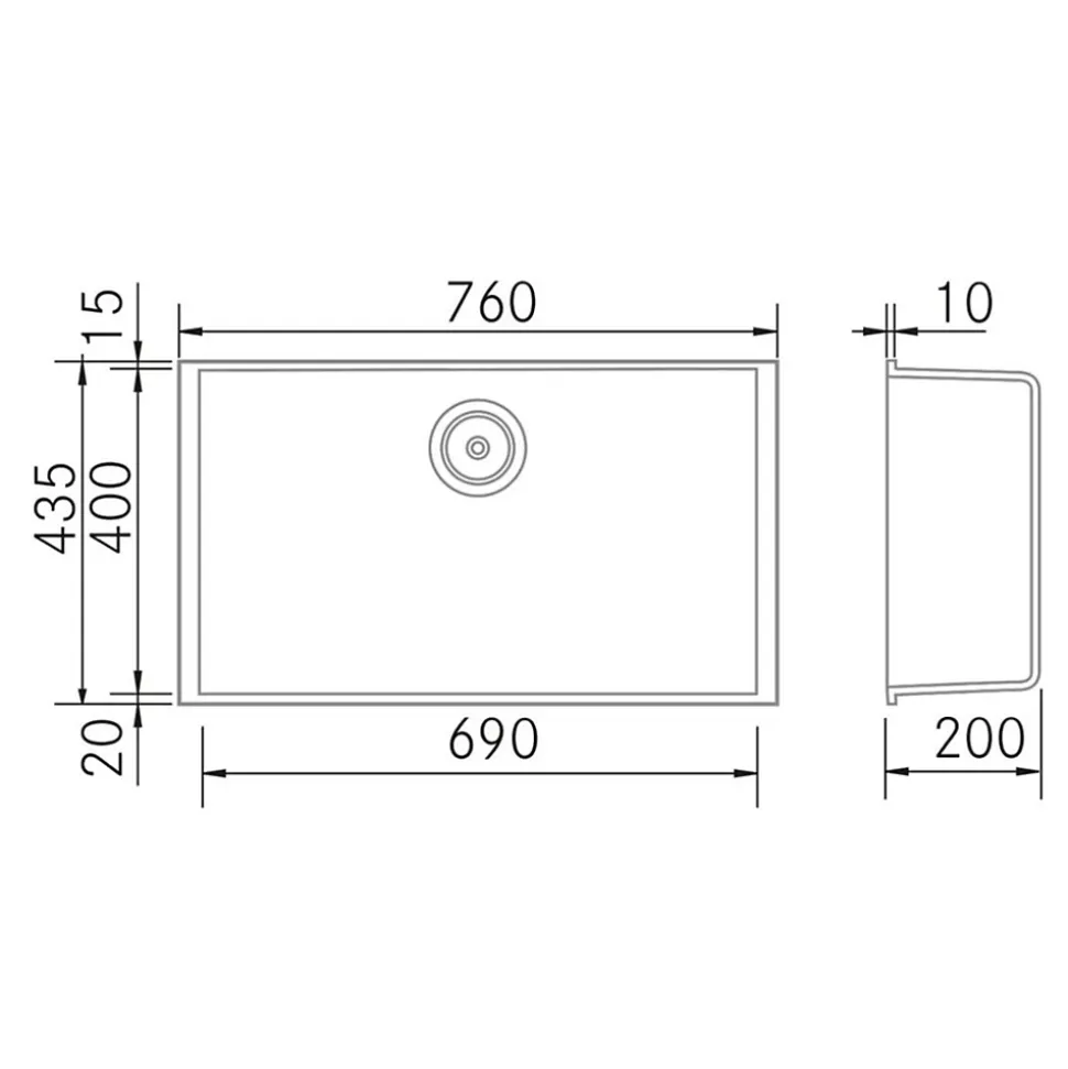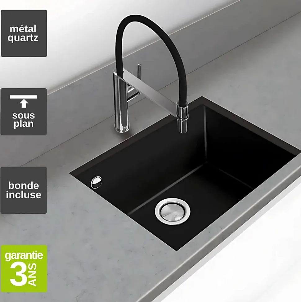 Évier sous-plan 1 Cuve 69x40x20cm R5mm – Quartz Noir Mat – Quadra BE FRÉCAN