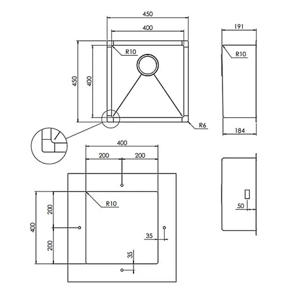 POINTS FORTS : • Évier encastrable cuve 40×40 cm•• Meuble sous évier 60 cm minimum•• CUIPD245 (ean 3537390365640) à commander•• Evier sans égouttoir, vidage manuel non inclus CARACTÉRISTIQUES : • Équipements inclus : livré sans équipement • Marque : Luisina • Matériau : Inox • Type de pose : à encastrer • Positionnement égouttoir : sans égouttoir • Coloris : Inox • Emplacement robinetterie : non percé • Nombre de bacs : 1 bac • Poids net (Kg) : 2.8 • Trop plein : oui • Sous-meuble : 60 cm • Longueur (mm) : 450 • Largeur (mm) : 450 • Longueur d’encastrement (mm) : 400 • Largeur d’encastrement (mm) : 400 • Grande dimension cuve 1 (mm) : 400 • Petite dimension cuve 1 (mm) : 400 • Profondeur cuve 1 (mm) : 191 • Diamètre bonde cuve 1 (mm) : 90 • Grande dimension cuve 2 (mm) : non disponible • Petite dimension cuve 2 (mm) : non disponible • Profondeur cuve 2 (mm) : non disponible • Diamètre bonde cuve 2 (mm) : non disponible • Bon à savoir : CUIPD245 (ean 3537390365640) à commander séparément • Vidage : livré sans système de vidage • Référence vidage : CUIPD245 (ean 3537390365640) à commander séparément