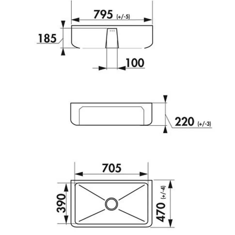 POINTS FORTS : • Évier timbre 79×47 cm • • Convient à un meuble sous évier de 80 cm • • Evier vidage manuel • • Évier sans égouttoir CARACTÉRISTIQUES : • Équipements inclus : bonde(s), siphon, trop plein, tuyaux d’évacuation • Marque : Chambord • Matériau : Céramique • Type de pose : à poser • Positionnement égouttoir : sans égouttoir • Coloris : Blanc • Emplacement robinetterie : non percé • Nombre de bacs : 1 bac • Poids net (Kg) : 28.4 • Trop plein : oui • Sous-meuble : 80 cm • Longueur (mm) : 795 (+/-5 mm) • Largeur (mm) : 470 (+/-4 mm) • Longueur d’encastrement (mm) : non disponible • Largeur d’encastrement (mm) : • Grande dimension cuve 1 (mm) : 705 • Petite dimension cuve 1 (mm) : 390 • Profondeur cuve 1 (mm) : 185 • Diamètre bonde cuve 1 (mm) : 90 • Grande dimension cuve 2 (mm) : non disponible • Petite dimension cuve 2 (mm) : non disponible • Profondeur cuve 2 (mm) : non disponible • Diamètre bonde cuve 2 (mm) : non disponible • Bon à savoir : ce produit ne présente pas de spécificités supplémentaires • Vidage : manuel • Référence vidage : le vidage est déjà inclus
