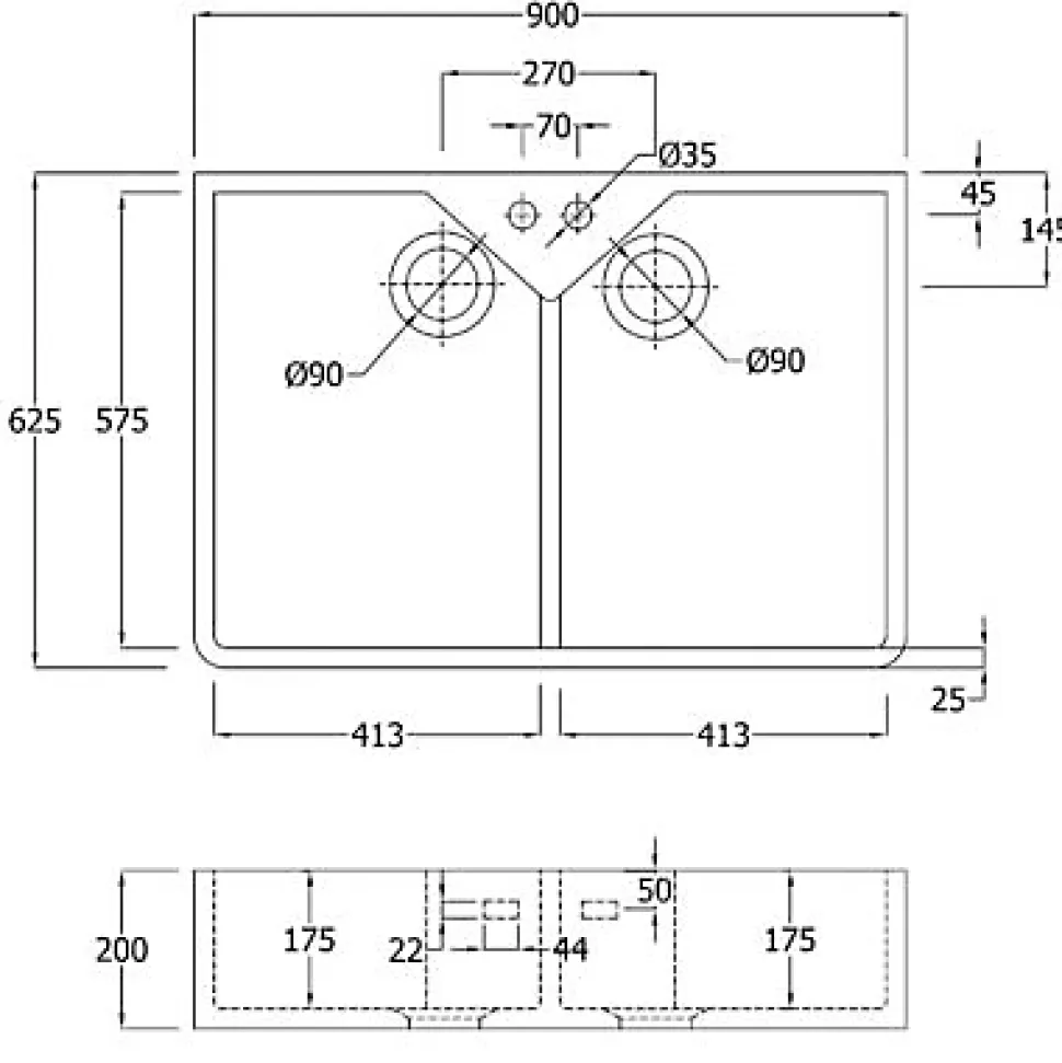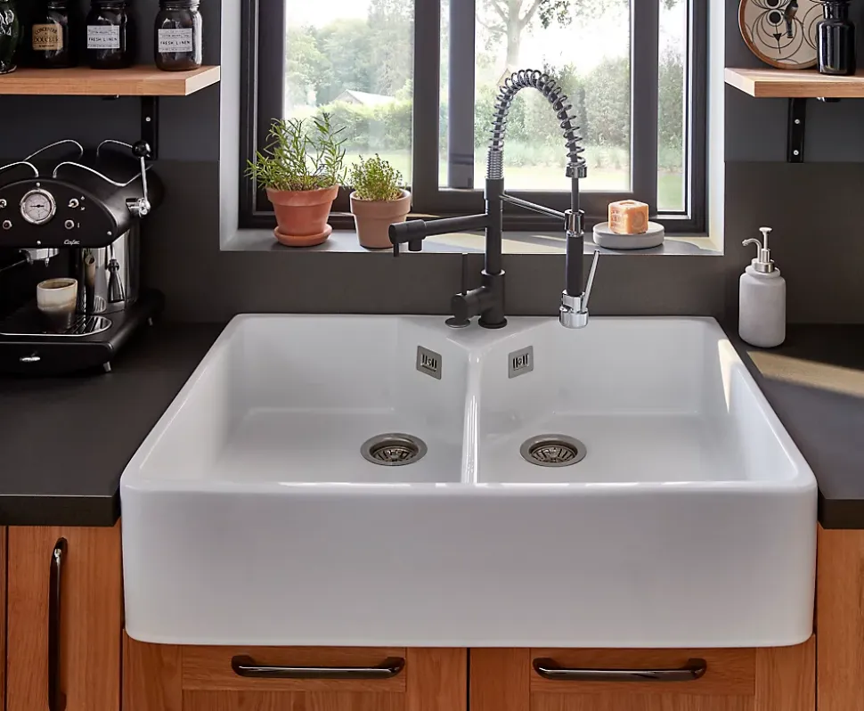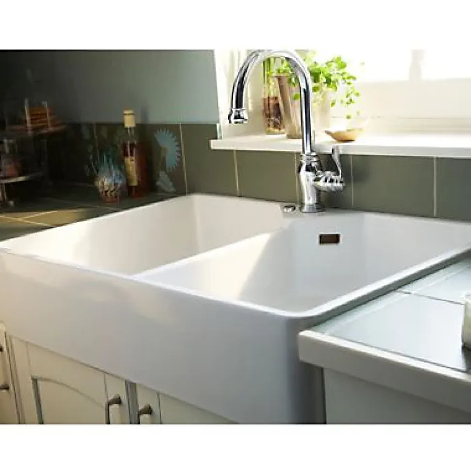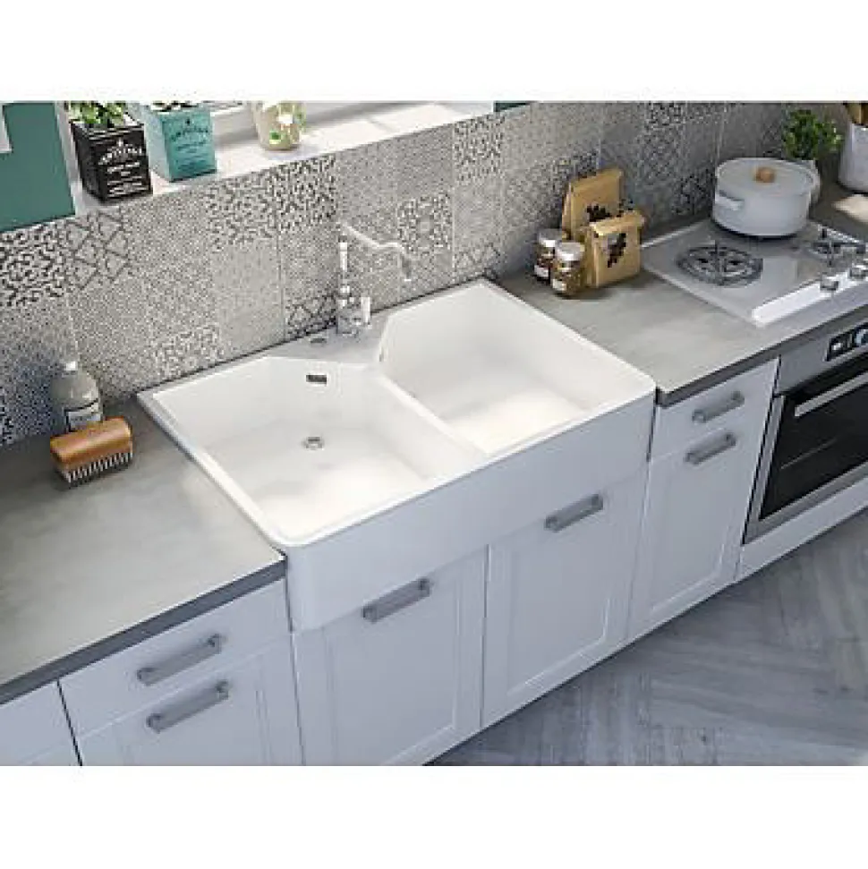 Évier timbre d’office de cuisine à poser 2 bacs Office Cooke & Lewis céramique blanc