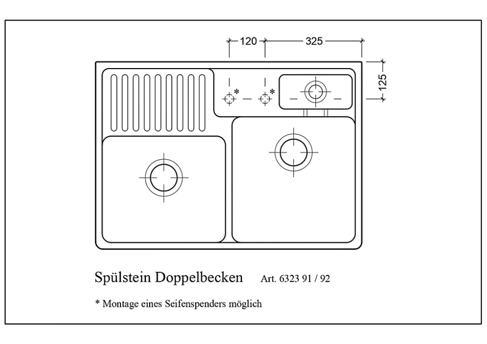 - Avant le montage de l’évier percez les trous de robinet. Reportez-vous aux instructions sur l’installation pour plus de détails