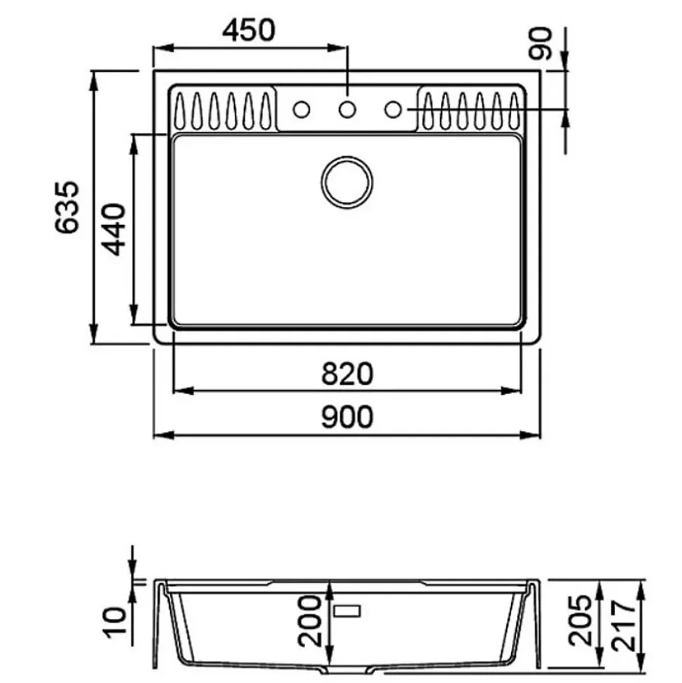 - Évier timbre 90×63,5 cm