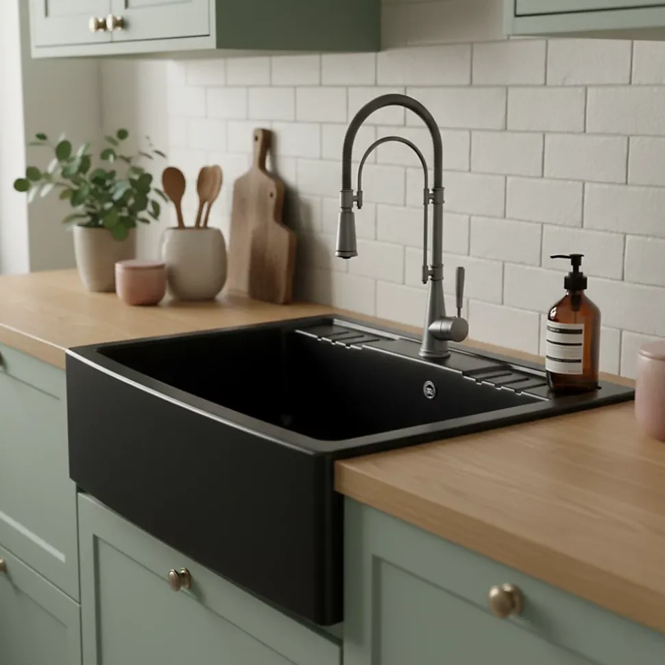 POINTS FORTS : • Évier timbre 89×66 cm • • Convient à un meuble sous évier de 90 cm• • Evier vidage manuel • • Evier sans égouttoir CARACTÉRISTIQUES : • Équipements inclus : bonde(s), siphon, trop plein, tuyaux d’évacuation • Marque : Chambord • Matériau : Granit • Type de pose : à poser • Positionnement égouttoir : sans égouttoir • Coloris : Noir • Emplacement robinetterie : percé • Nombre de bacs : 1 bac • Poids net (Kg) : 41.5 • Trop plein : oui • Sous-meuble : 90 cm • Longueur (mm) : 898 (+/-3 mm) • Largeur (mm) : 661 (+/-2 mm) • Longueur d’encastrement (mm) : non disponible • Largeur d’encastrement (mm) : • Grande dimension cuve 1 (mm) : 790 (+/-2) • Petite dimension cuve 1 (mm) : 466 (+/-2) • Profondeur cuve 1 (mm) : 254 (+/-3 mm) • Diamètre bonde cuve 1 (mm) : 90 • Grande dimension cuve 2 (mm) : non disponible • Petite dimension cuve 2 (mm) : non disponible • Profondeur cuve 2 (mm) : non disponible • Diamètre bonde cuve 2 (mm) : non disponible • Bon à savoir : ce produit ne présente pas de spécificités supplémentaires • Vidage : manuel • Référence vidage : le vidage est déjà inclus