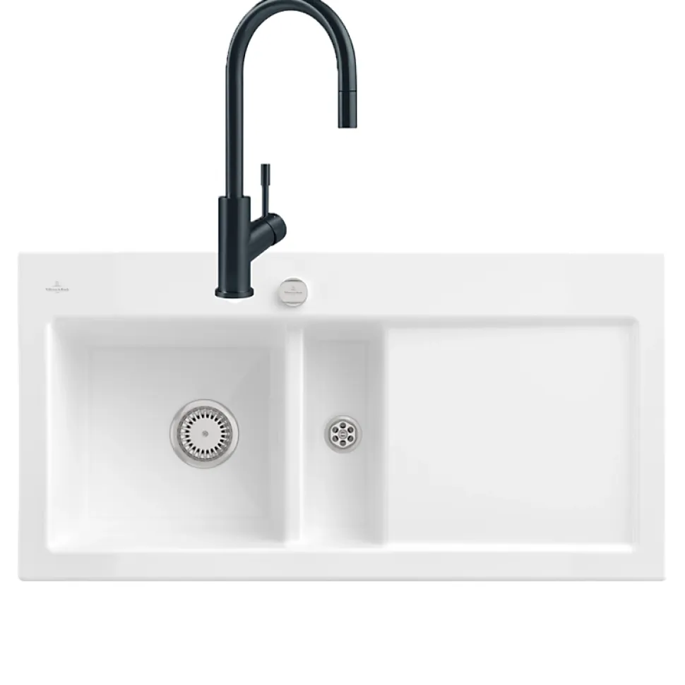 Points forts de l’évier 1 cuve 1/2 Subway Pure 60Design épuréÉviers en céramique de haute qualité composés de matières premières 100 %sMatières premières 100 %sExcellente résistance aux chocs et aux rayures et très faible risque de détériorationSurfaces parfaitement étanches pour un nettoyage facile et des surfaces hygiéniquesCaractéristiques de l’évier 1 cuve 1/2 Subway Pure 60Évier à encastrer par-dessusCéramiqueEgouttoir à droiteÉvier non réversible1 Cuve 1/2Dimensions : 100 x 51 cmDécoupe du plan de travail : 97 x 48 cmDimension minimale du meuble sous évier: 60 cm2 trous percésAvec vidage automatique (cet évier n’existe pas avec vidage manuel)Les avantages du Robinet cuisine VILLEROY ET BOCH Umbrella flexHauteur offrant une liberté de mouvement, condition parfaite pour faciliter le nettoyage et remplir de grand récipientsDouchette extractible pour une fonctionnalité parfaiteJet confort : jet ventilé parfaitement calibré pour économiser de l’eau et assurer un bon lavagePivotement complet à 360° pour une flexibilité totale sur l’évierRevêtement anti-traces et anti-tachesInstallation simple et rapide grâce à des composants de haute qualité et standardisésRobinet de cuisine en acier inoxydable 100% exempt d’acide, de goût et d’émissions pour un robinet robuste, durable, extrêmement hygiéniqueDesign moderne pour sublimer votre cuisineRevêtement PVD : la surface est résistante aux UV et aux chocsPeut-être installer directement devant un murOuverte à froid pour ne pas chauffer inutilementLes caractéristiques techniques du Robinet cuisine VILLEROY ET BOCH Umbrella flexLongueur : 21,5 cmLargeur : 4,5 cmHauteur : 30,9 cmCollection : UmbrellaMatériel : Acier inoxydableCartouche : plastique avec bague en céramiqueRayon de pivotement : 360°Angle d’ouverture du levier : 25°Débit du jet confort : 11,5 L / minFlexibles fournis : 60 cm »