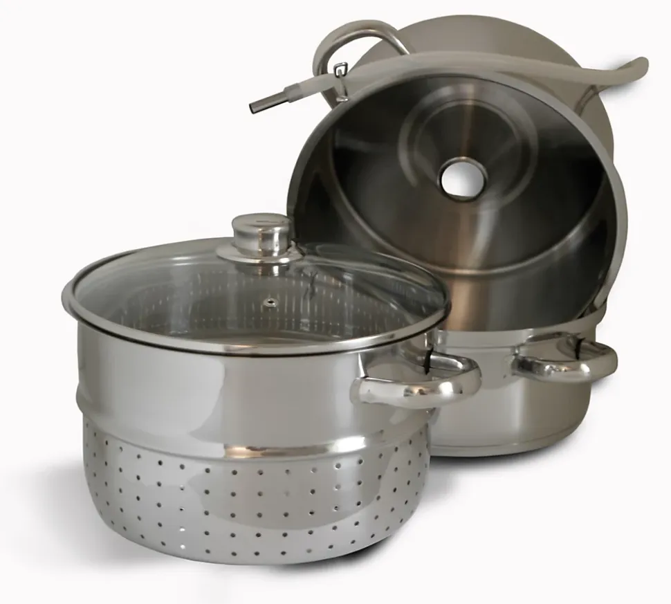 L’extracteur de jus en inox 26 cm de Baumalu incarne l’excellence culinaire en offrant une expérience de préparation inégalée. Conçu avec soin et fabriqué en acier inoxydable, cet extracteur polyvalent ouvre un monde de possibilités pour créer des jus concentrés, des gelées, des confitures, des sirops, des coulis, des compotes et des pâtes de fruits, avec une facilité et une efficacité exceptionnelles.Le triple fond diffuseur capsulé est la clé d’une répartition uniforme de la chaleur. Il assure une cuisson précise et homogène, pour des résultats savoureux à chaque utilisation.Les poignées en inox creuses restent fraîches même pendant la cuisson, offrant une manipulation confortable et sécurisée. La conception creuse évite la transmission de chaleur indésirable.Avec un réservoir à jus de 2.7 litres et un réservoir à eau de 4 litres, cet extracteur offre une capacité généreuse pour répondre à vos besoins de préparation, qu’il s’agisse de petites portions ou de grandes quantités.Cet extracteur de jus est compatible avec tous les types de feux, y compris l’induction, offrant une flexibilité totale dans votre choix de cuisson.Collection : Divers Matière : Acier inoxydable (inox) Couleur : Argent / Métallique Longueur : 26.00 cm Largeur : 26.00 cm Hauteur : 37.00 cm Diamètre : 26.00 cm