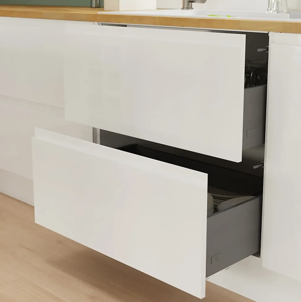 - Nous aimons tout ce qui est facile à installer, comme nos portes prépercées prêtes pour toutes les combinaisons de tiroirs et de matériel que nous proposons. Ainsi vous pouvez facilement, rapidement et correctement installer votre cuisine, sans tracas