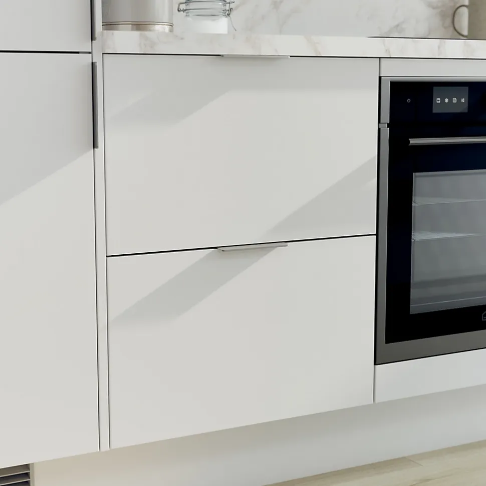 - Son style classique et sophistiqué se marie parfaitement avec la finition blanche ultra mate contemporaine. À associer avec des bois clairs et des accessoires en métal issus de nos gammes GoodHome pour apporter une note chaleureuse.