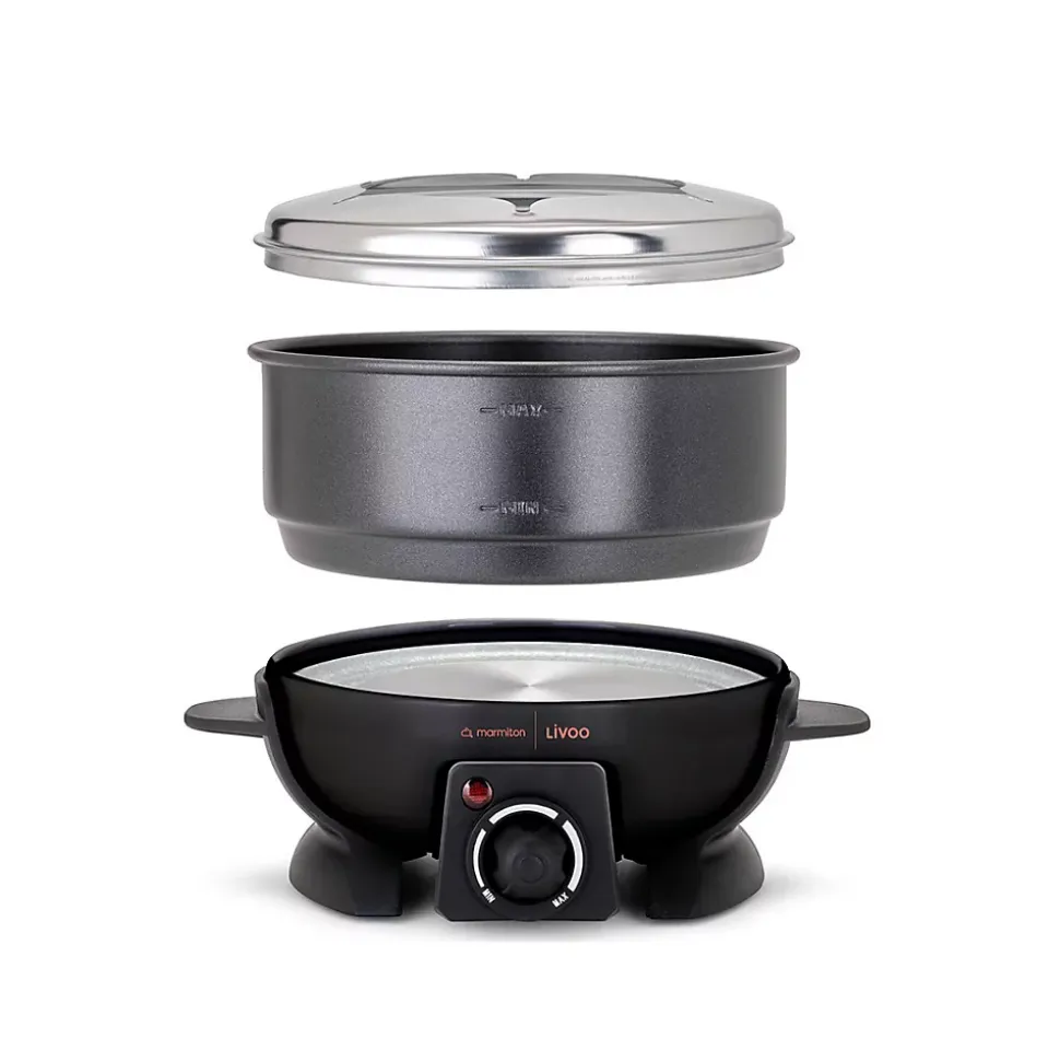 Fondue électrique 650w 6 fourchettes Livoo – Fondue électrique 650w 6 fourchettes DOC308 de LivooCaquelon d’une capacité de 1,6 L pour 6 personnes, avec fourchettes colorées, parfait pour des soirées conviviales.Thermostat ajustable et puissance de 650 W, pour une cuisson maîtrisée adaptée au type de fondue.Revêtement antiadhésif pour éviter que les aliments restent attachés et pour un nettoyage facile. – Type de produit : Fondue électrique.Nombre de personne : 6.Capacité : 1,6 L.Puissance : 650 W.Secteur : Oui.Secteur : Fiche ronde.Matière : Metal.Thermostat ajustable : Oui.Matière de caquelon : Acier.Revêtement : Antiadhésif.Support : Métal.Nombre de fourchettes : 6.Compatibles lave-vaisselle : Caquelon et fourchettesNombre pieds : 4 pieds antidérapants.Dimensions : 24 21x 15.5cm.Couleur : Noir.Dimensions (LxlxH) 19.8 x 20 x 16.2 cm.Poids 1.4400 Kg.