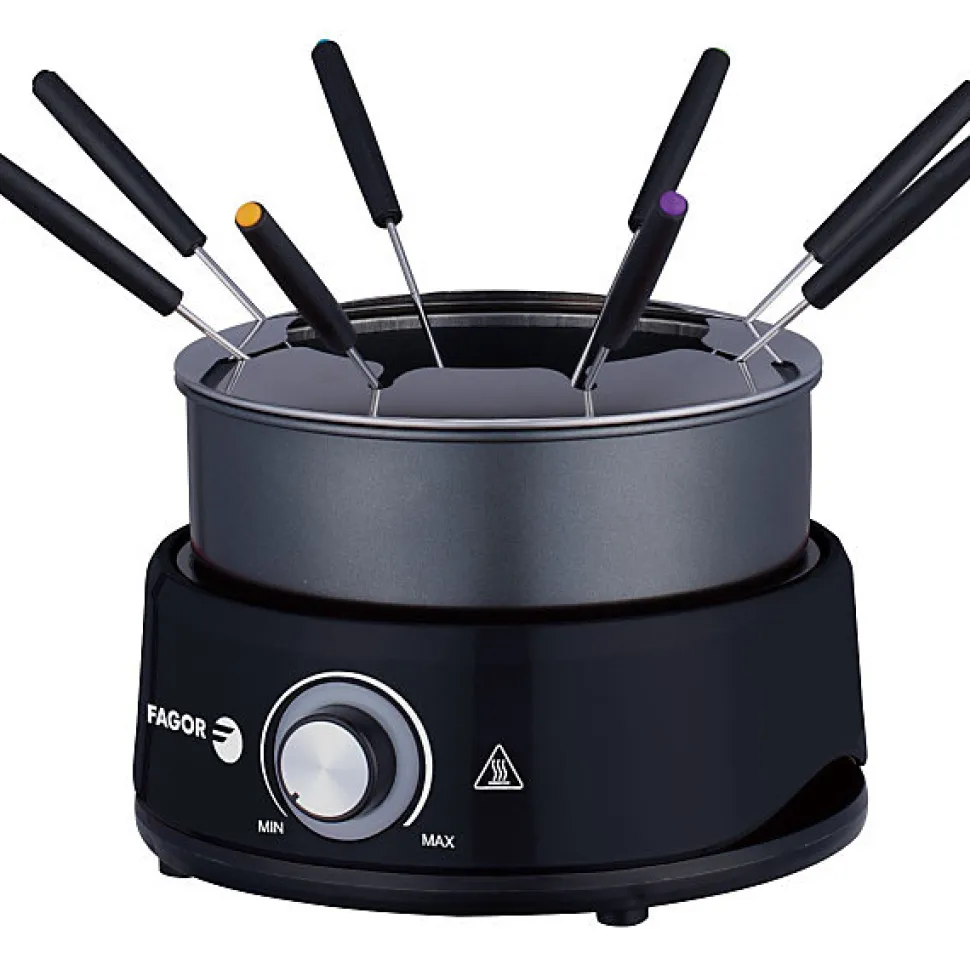 Plongez dans la tradition de la fondue avec l’Appareil a fondue FAGOR FGFD8 ! Parfait pour 8 personnes, cet appareil offre une capacité généreuse de 1.6L et une puissance de 800W. Son thermostat réglable vous permet de maintenir la température idéale pour une fondue réussie. Le revetement antiadhérent et les pieds antidérapants garantissent un usage sécurisé et un entretien facile.