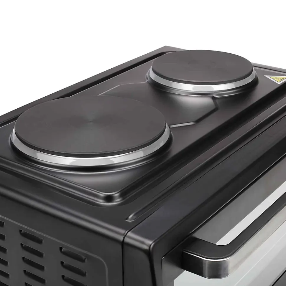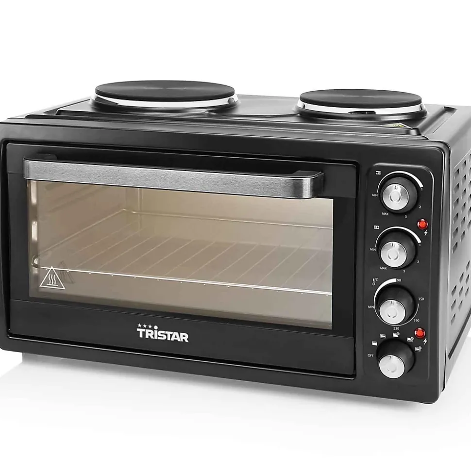 Four 38l 3100w avec plaques électriques Tristar – Four à convection Tristar OV1443 avec 2 plaques chauffantes. Association unique d’un très grand four à convection de 38L et de 2 plaques chauffantes 1000W + 600W. Four double cavité (supérieure et inférieure). Dispose d’une plaque de cuisson, d’une lumière intérieure, d’une grille de cuisson et d’une poignée pour retrait de plaque de cuisson ou de grille de barbecue. – Coloris : Noir.Capacité : 38 L.Corps en Inox.Thermostat pour chaque plaque de cuisson.Fonction chaleur tournante.Grille.Plaque de cuisson.Panneau de contrôle analogique.Température réglable : 90230 °C.Porte à double vitrage.Éclairage intérieur.Témoins lumineux de fonctionnement.Voltage : 220240 volts.Puissance : 3100 Watts.L x B x H (cm) : 40.5 x 47.5 x 64.Poids net (kg) : 10.8.Poids brut (kg) : 12.3.