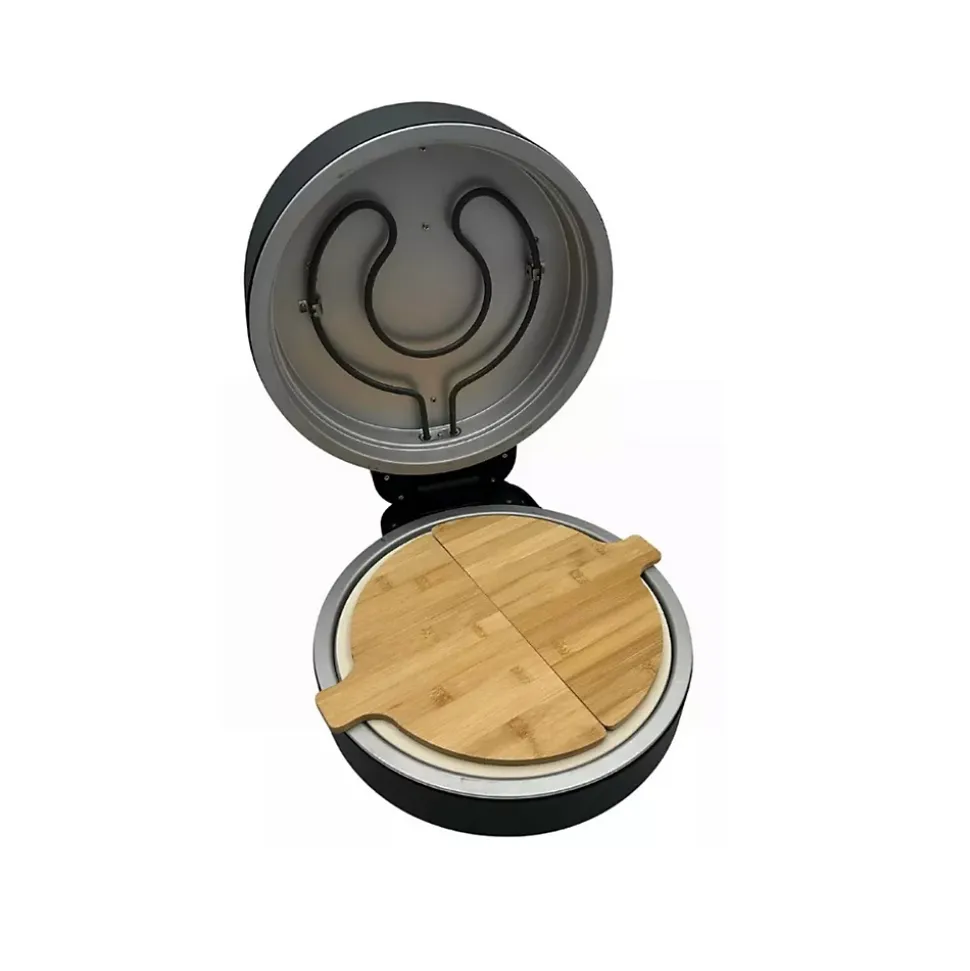 Four à pizza 1800w noir Little Balance – Four à pizza rond 8859 de Little balance au design moderne unique.Puissant (1800W) pour une cuisson rapide.Pierre à pizza amovible de diamètre 30cm pour un lavage facile.Thermostat réglable avec voyant lumineux.Température de cuisson 400?.Fonction minuterie jusqu’à 60 min avec voyant lumineux.Deux éléments chauffants à double boucle et des ventilateurs sur le boîtier supérieur et inférieur.Poignée cool touch pour éviter les brûlures. – Type de produit : Four à pizza.Puissance (W) : 1800.Préparation : Pizza.Thermostat réglable : Oui.Divers : Température de cuisson 400°C.Minuteur : Oui.Fonction(s) supplémentaire(s) : Minuterie jusqu’à 60 min.Equipement : Poignée cool touch.Accessoire(s) inclus : 2 palettes à pizza en bois.Sécurité(s) : Pieds antidérapants.Couleur : Noir.Largeur : 34 cm.Hauteur : 23.7 cm.Profondeur : 38 cm.Poids : 4.96 kg