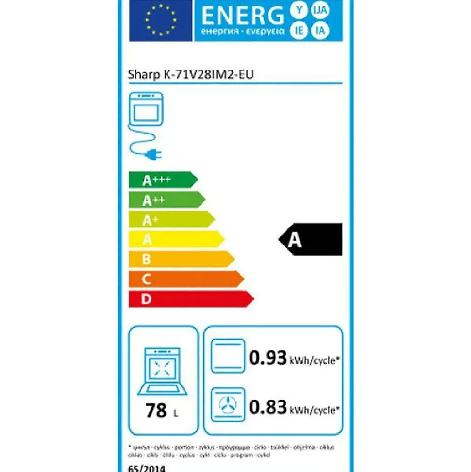 Four encastrable multifonction 78l 59cm a pyrolyse noir Sharp – Four encastrable multifonction Sharp K71V28IM2.Nettoyage Pyrolyse: le four fonctionne à très haute température (480°C) pendant 1,5h pour réduire en cendres les salissures.ActiveCool: Equipée d’un quadruple vitrage et d’un système de ventilation, la porte du four est isolée de façon efficace et reste froide, même à des températures de pyrolyse (480°C).Remove&Wash: la vitre intérieure de la porte du four est amovible pour être nettoyée.Cavité: fours grande capacité 78 L + plateaux larges.Four multifonction à chaleur tournante air pulsé (turbine + résistance circulaire sur la parois arrière) .Rails entièrement télescopiques: Sortie totale des plaques.Fermeture douce assistée « SoftClosingDoor »: La porte du four se referme toute seule quand elle est relâchée juste avant d?être fermée. – Classe énergétique : A.Nombre de cavités : 1.Type d’énergie : ElectriqueVolume total net (L) : 78.Mode de cuisson : Multifonction.Ecran : Oui.Horloge : Oui.Nettoyage : Pyrolyse.Programmateur : Oui.Couleur : Noir.Anti-traces : Oui.Nombre de modes de cuisson : 7.Convection naturelle : Oui.Gril : Oui.Tournebroche : Non.Cuisson vapeur : Non.Décongélation : Oui.Autre(s) mode(s) de cuisson : Chaleur brassée, Turbo.Type de porte : Fermeture douce.Ouverture de la porte : Porte abattante.Porte froide : Oui.Nombre de vitre(s) : 4.Eclairage intérieur : Oui.Sonde à viande : Non.Lèchefrite : Oui.Accessoire(s) inclus : Kit rails télescopiques, 1 lèchefrite, 1 plateau profond.Dimensions du produit (HxlxP) en cm : 59.2 x 59.2 x 56.5.Dimensions d’encastrement (HxlxP) en cm : 58 x 56 x 59.