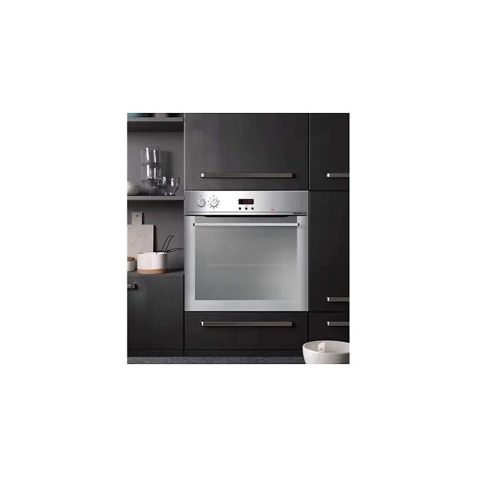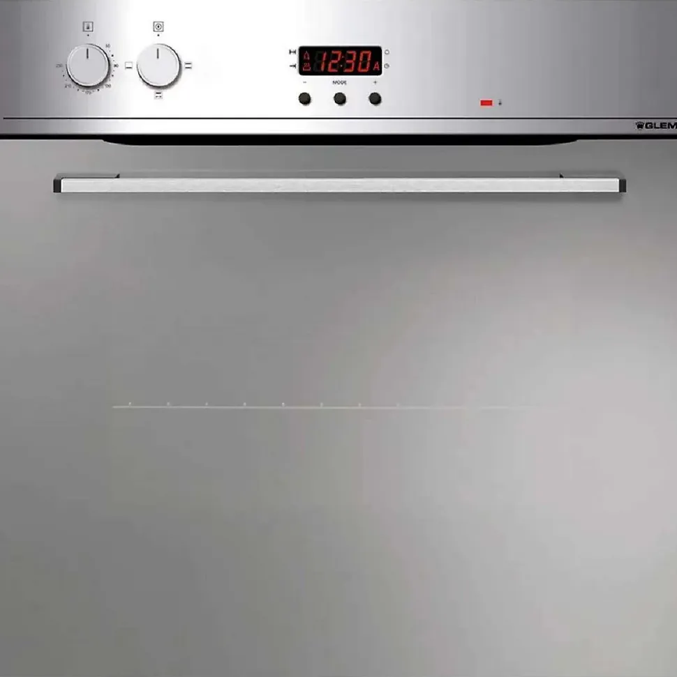 Four intégrable 59l 60cm catalyse inox Glem – Four intégrable catalyse Gmel GFMC330IX doté de 3 modes de cuisson dont Gril + tournebroche. Contre-porte plein verre avec vitre amovible sans outils pour faciliter le nettoyage. – Type de produit : Four intégrable.Nettoyage four : Catalyse.Volume du four : 59 L.Energie four : électrique.Type de cuisson : Convection naturelle.Chaleur tournante : non.Modes de cuisson : 3.Programmateur : électronique.Préconisation température : non.Cuisson basse T° : non.Sonde de cuisson : non.Fonction Vapeur : non.Tournebroche : oui.Porte froide : non.Ouverture porte : abattante.Eclairage intérieur : oui.Accessoires : 1 grille / 1 lèchefrite / 1 tournebroche.Connecté : non.Eco Label énergie : ALe + produit : TournebrocheProgrammateur électronique durée et fin de cuisson.Affichage digital de l’heure.Voyant de température atteinte.Parois catalytiques.Gradins fils à 5 niveaux.Eclairage .Porte 2 vitres.Ventilateur tangentiel de refroidissement.Finition inox.Cordon électrique : fourni (180 cm) avec fiche.Coloris : inox.Dimensions Encastrement (LxHxP) : 55,8 x 59 x 55 cm.Poids net : 28 Kg.
