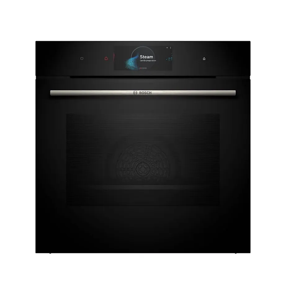 Four intégrable combi vapeur 71l 60cm a+ ecoclean noir Bosch – Four intégrable HSG7584B1 combi vapeur de Bosch. – Type de produit : Four intégrable combi vapeur.Puissance du raccordement électrique en watts : 3600.Évaluation actuelle de l’appareil : 16.Capacité : 71.Méthode de cuisson : Four ventilé.Type de carburant : Électrique.Minuteur : Oui.Programmes de recettes et/ou de cuisson automatique : Oui.Type de porte : Conventionnel.Charge totale connectée KW/W : 3.6.Type d’installation – Intégré/Construit sous : Soit.Méthode de nettoyage du four principal : Nettoyage facile.Classe énergétique : UN.Interface utilisateur : Écran tactile TFT avec bague de commande numérique.N° modes de chauffage : 23.Méthode de cuisson : 4D Air pulsé, Frire à l’air libre, Chaleur de sole, Chaleur sole-voûte, Chaleur sole-voûte douce, Décongélation, Déshydratation, fermentation, Gril pleine largeur, Gril demi-largeur, Air chaud doux, Griller air pulsé, Chaleur intense, cuisson basse température, Position pizza, préchauffage , Régénération, Vapeur 100%, réchauffement.Plage de température (°C) : 30-250 °C.Prise d’eau : Réservoir d’eau.Volume du réservoir d’eau : 1,0 litre.Système de nettoyage intégré : Catalytique tous côtés, Hydrolytique.Facilité d’accés : Accessoire.Charnière de porte : Fond, amorti.Volume utile (de cavité) – NOUVEAU (2010/30/CE) : 71 litres.Dispositif de sécurité : sécurité enfants, contacteur de porte, indicateur de chaleur résiduelle, fonction d’arrêt de sécurité du four, bouton de démarrage.Accessoires inclus : 1 x plaque à pâtisserie émaillée, 1 x grille, 1 x lèchefrite, 1 x récipient vapeur perforé taille XL, 1 x récipient vapeur perforé taille M, 1 x récipient vapeur non perforé taille M.Modes de chauffage combinables avec la fonction vapeur : Air chaud 4D, Chaleur conventionnelle, Griller à air chaud, Réchauffer.Couleur :