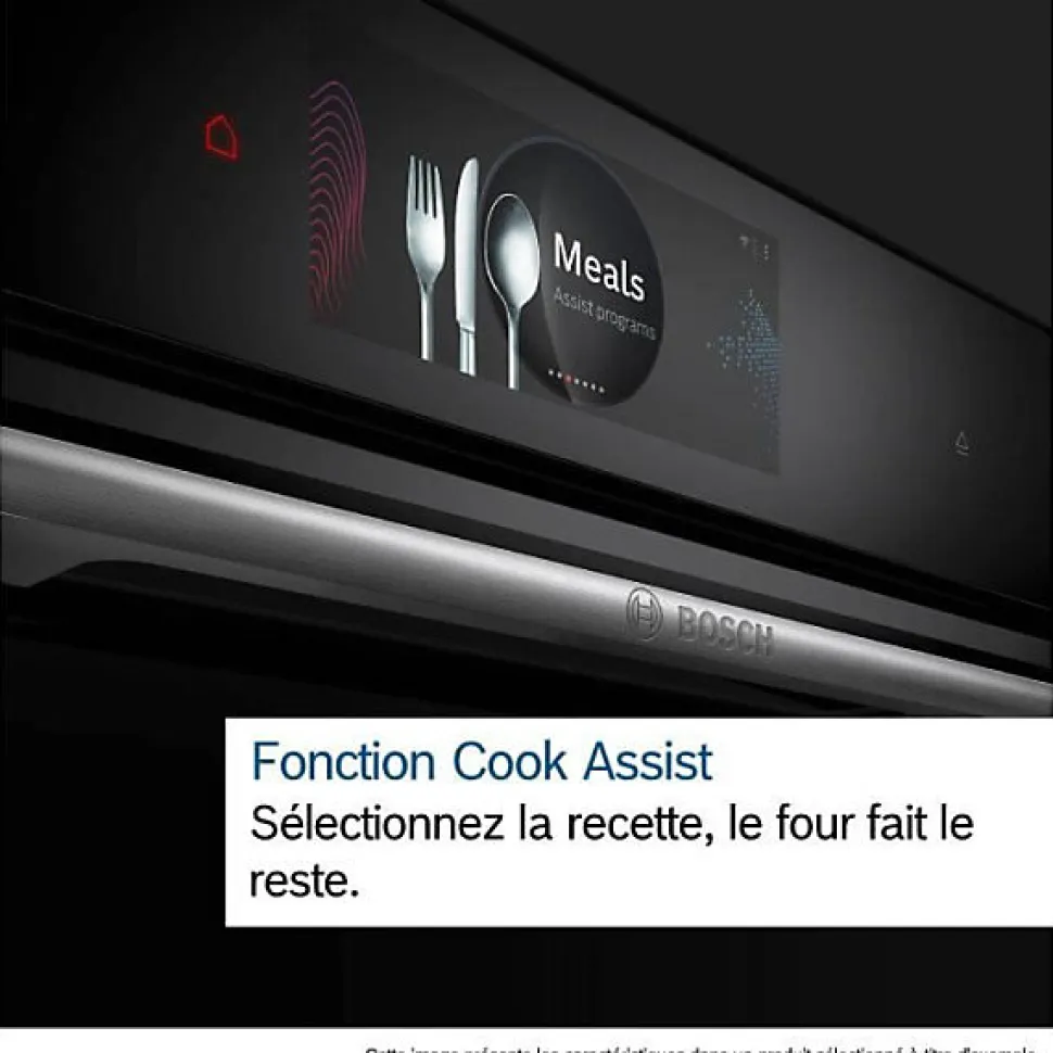 Four intégrable combi vapeur 71l 60cm a+ pyrolyse noir Bosch – Four intégrable combi vapeur Série 8 Bosch HRG7764B1 avec ajout de vapeur, anneau de contrôle digital et écran TFT couleur tactile. Bénéficie de la fonction Assist qui prépare automatiquement vos plats pour qu’ils soient croustillants et juteux, avec PerfectRoast Plus, PerfectBake Plus et Home connect pour contrôler votre four depuis l’application. Anneau de contrôle digital : la commande de four la plus simple et la plus innovante. Ecran TFT couleur tactile : contrôle aisé grâce à l’innovant anneau de contrôle digital et l’écran TFT tactile de 7 x 7 cm. Perfect Steam : légumes, poissons et viandes cuits à la vapeur à la perfection. Steam Boost : réalisez de délicieux pains maison à la croûte croustillante en injectant à votre gré des jets de vapeur. Cuisson douce : économise de l’énergie pendant la cuisson et le rôtissage. Doté de 20 modes de cuisson dont : hotair 4D, convection naturelle, gril air pulsé, gril grande surface, gril petite surface, position pizza, chaleur de sole, cuisson basse température, décongélation, préchauffage, maintien chaud, air pulsé doux, cuisson douce, air fry, régénération vapeur, levage de pâte, gril air pulsé + vapeur, maintien chaud + vapeur, air pulsé 4D + vapeur, convection naturelle + vapeur. – Type de produit : Four intégrable combi vapeur.Réglage de température : 30 °C – 300 °C.Nombre de niveaux de rack : 5 unité.Rails téléscopiques en option, pyrolysables.Commandes par touchControl.Anneau de contrôle digital.Cavité intérieure en noir diamant.Four grande capacité.Intérieur de porte plein verre.Assistant à commande vocale.Ecran TFT couleur tactile Plus.Horloge électronique.Préconisation de température.Affichage de la température Contrôle optique de la montée en température Sonde électronique de température.Porte abattante.Système SoftMove : ouverture et fermeture douces