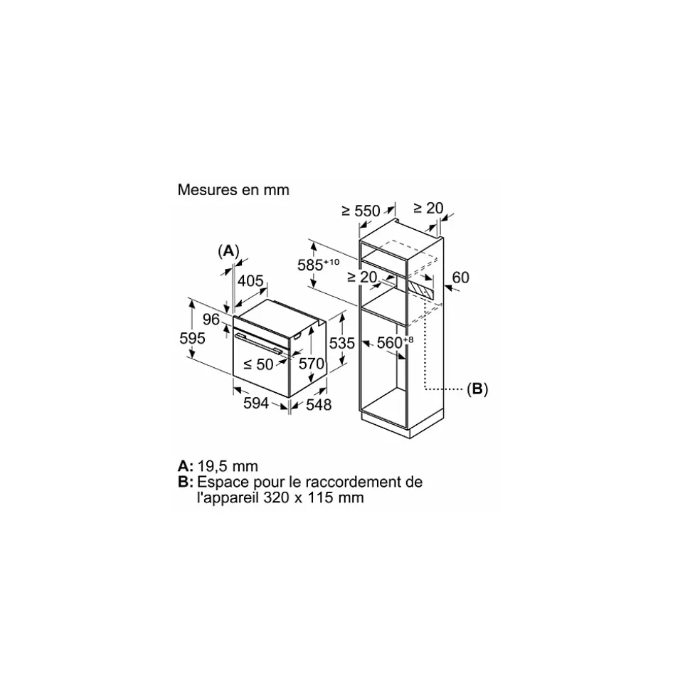 Four intégrable combi vapeur 71l 60cm pyrolyse Neff – Four à vapeur N 50 B6AVH7AN3F de Neff.Une interaction agréable : accès illimité grâce à la porte Hide escamotable, à la vapeur ajoutée et à l’autonettoyage pyrolytique.Hide : la porte du four disparaît à l’ouverture.Added Steam : Injecter la juste quantité de vapeur dans votre four pour que vos plats restent moelleux à l’intérieur et dorés à l’extrérieur.Pyrolyse et Hydrolyse : Le duo idéal pour un nettoyage parfait : pyrolyse après un usage intensif. Hydrolyse, l’option pour un nettoyage rapide du four.Ecran LCD : Une lecture simple, efficace et claire des paramètres de cuisson.CircoTherm : la solution intelligente qui répartit l’air chaud de façon homogène sur trois niveaux à la fois. – Type de produit : Four vapeur.Type de construction : Encastrable.Classe d’efficacité énergétique : A+.Volume : 71 L.Puissance de raccordement : 3600 W.Pprogrammes automatiques : 15.Nombre de modes de cuisson : 12.Nombre de niveaux de rack : 4.Longueur du cordon électrique : 120 cm.Réglage de température : 30 °C – 275 °C.Tension : 220-240 V.Intensité : 16.Porte froide : 4 vitres.Charnière de porte : Escamotable.Sécurité enfants : Oui.Indicateur de chaleur résiduelle : Oui.Coupure de sécurité du four : Oui.Verrou de porte électronique : Oui.Convection naturelle : Oui.Gril ventilé : Oui.Type de prise : Fiche cont.terre/Gard.fil ter.Système de nettoyage intégré : Pyrolyse + Hydrolyse.Préchauffage rapide : Oui.Poignée : Inox.Position pizza : Oui.Câble de raccordement : 120 cm.Accessoires inclus : Grille, lèchefrite, Tôle de cuisson émaillée Ventilateur en inox.Dimensions d’encastrement (HxLxP): 560 mm – 568 mm x 585 mm -595 mm x 550 mm.Dimensions appareil HxLxP : 595 x 594 x 548 mm.Poids net : 42.6 kg.