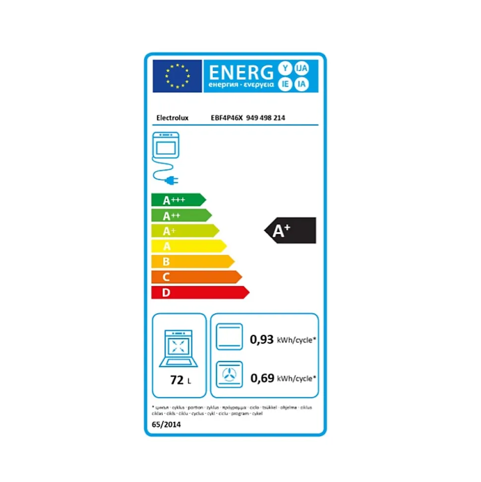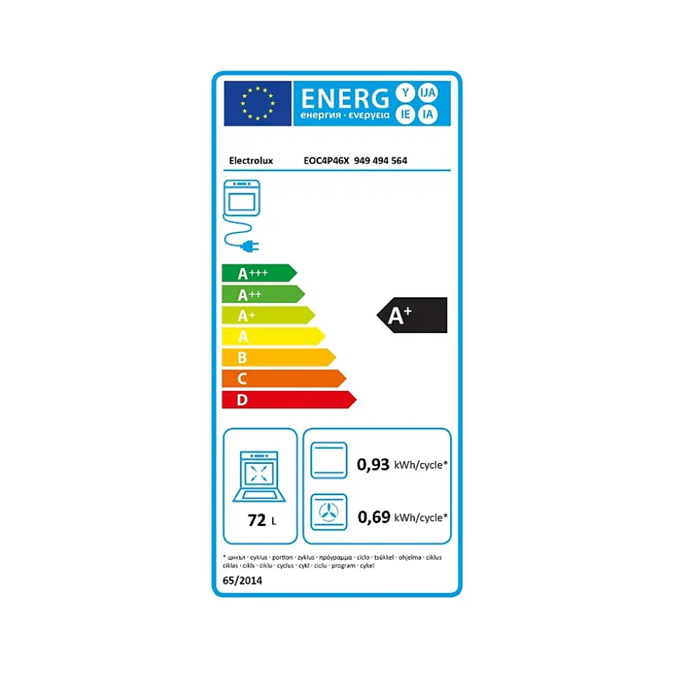 Four intégrable combi vapeur 72l 60cm pyrolyse inox Electrolux – Le four encastrable SteamCrisp Série 700 EOC4P46X Electrolux combine la cuisson traditionnelle en chaleur tournante et la vapeur pour garantir des résultats optimaux. L’ajout de vapeur pendant la cuisson maintient les aliments moelleux et juteux au cœur, tandis que l’air chaud les rend croustillants et dorés à l’extérieur. Dîtes Adieu à la cuisson classique et dîtes Bonjour à SteamCrisp. Associant vapeur et chaleur traditionnelle pour une cuisson douce empêchant vos plats de sécher. Redécouvrez vos saveurs préférées avec la vapeur. Gardez votre four encastrable naturellement propre grâce à la fonction de nettoyage par Pyrolyse. Il détruit toutes les projections de graisses grâce à une élévation de la température à 500°C ! Récupérez les cendres et le tour est joué. Découvrez une nouvelle façon de profiter de votre four àl’écran explore avec ses commandes tactiles sensitives. L’interface dynamique vous offre un accès rapide et un contrôle dynamique du temps de cuisson, de la température et des autres fonctions. Plus d’attente ni de temps perdu avec la fonction préchauffage Rapide et son temps de préchauffe raccourci comparé à un four standard. La chaleur tounrnante pulsée fait circuler l’air à travers le four assurant une cuisson homogène. Plus besoin de remuer ou de retourner votre plat. Une cuisson plus rapide pour un gain de temps et d’énergie. – Type de produit : Four pyrolyse.Gamme : SteamCrisp Série 700 Pro.Mode de cuisson : Multifonction vapeur.Nettoyage : Pyrolyse.Connecté : Non.Puissance totale (W) : 2980.Puissance du gril (W) : 2300.Température maxi (°C) : 300.Indice d’efficacité énergétique (EEI cavité entière) : 81.2.Classe d’efficacité énergétique cavité entière : A+.Conso. énergie cavité entière mode conventionnel (kWh/cycle) : 0.93.Conso. énergie cavité entière mode chaleur tournante (kWh/cycle) : 0.69.Nombre de cavités :