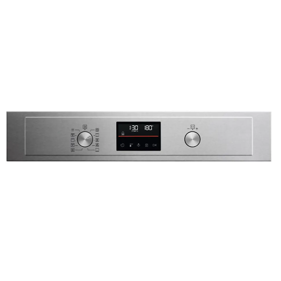 Le four pyrolyse ELECTROLUX EOC4P46X combine cuisson traditionnelle, chaleur tournante et cuisson vapeur pour des résultats optimaux. Sa technologie pyrolyse assure un nettoyage efficace par montée en température élevée. Équipé d’un écran tactile et de manettes rétractables, il offre une expérience utilisateur fluide. Polyvalent, il propose 45 programmes automatiques, pizza, décongélation, et un préchauffage rapide. Son volume de 72L et sa porte froide facilitent l’usage au quotidien dans un design inox moderne.