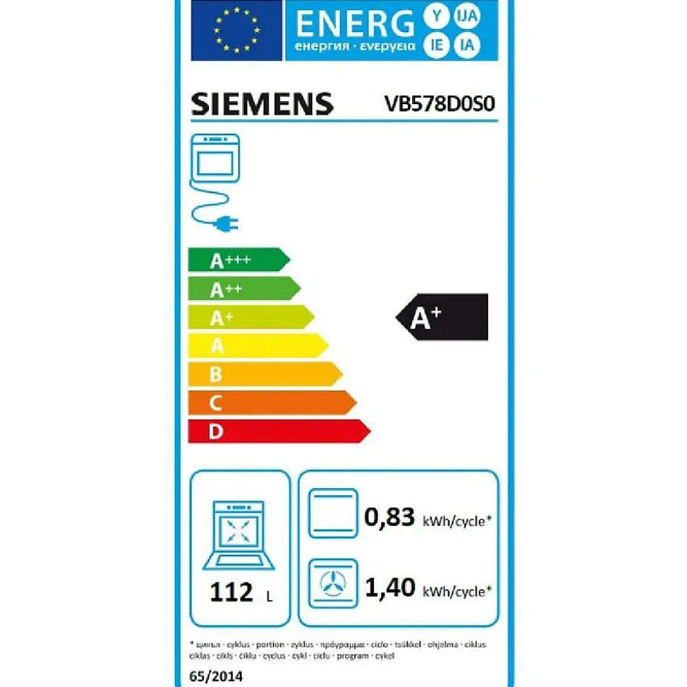 Four intégrable multifonction 112l 90cm a+ pyrolyse inox Siemens – Le four intégrable multifonction iQ500 Siemens VB578D0S0 vous offre une capacité maximum en réduisant le temps de cuisson grâce au préchauffage.Préchauffage rapide : votre four atteint plus rapidement la température souhaitée.Le nettoyage pyrolyse : le système automatique pour un nettoyage sans effort.LightControl : éclairage intuitif.HotAir : résultat de cuisson parfait sur deux niveaux.Grande capacité : 112 litres.Nettoyage :Nettoyage Pyrolyse.lightControl : bouton rétroéclairé.Design :Intérieur de porte plein verre.Ecran LCD.Type de four/Modes de cuisson :Volume 112 l.Four avec 10 modes de cuisson :, convection naturelle, air pulsé 2D, gril air pulsé, gril grande surface, gril petite surface, position pizza, chaleur de voûte et de sole, décongélation, cuisson douce.Réglage de température : 50 °C – 280 °C.Rail télescopique 1 niveau.Confort/Sécurité :Horloge électronique.Porte abattante.Eclairage halogène.Ventilateur de refroidissement.Interrupteur au contact de la porte. – Groupe de produit : Four.Type d’appareil : Four encastrable.Couleur de l’appareil : Inox, Noir.Couleur et matériau de la porte : Noir.Design : Intégrable.Type de commandes : Electronique.Système de commandes : ACL, Affichage digital, Bouton rotatif, Bouton rotatif, Manette illuminé, Sur l’élément de commande, Touches sensitives.Y a-t-il des commandes intégrées pour la table : non.Programme automatique : non.Matériau de la porte : Verre.Type d’énergie : Électrique.Puissance maximum de raccordement électrique (W) : 4200.Intensité (A) : 20.Tension (V) : 220-240.Fréquence (Hz) : 50, 60.Certificats de conformité : CE.Longueur du cordon électrique (cm) : 115.Type de prise : sans fiche.Profondeur porte ouverte à 90° (mm) : 1029.Hauteur (mm) : 594.Largeur appareil (mm) : 896.Profondeur (cm) : 570.Hauteur minimum de la niche
