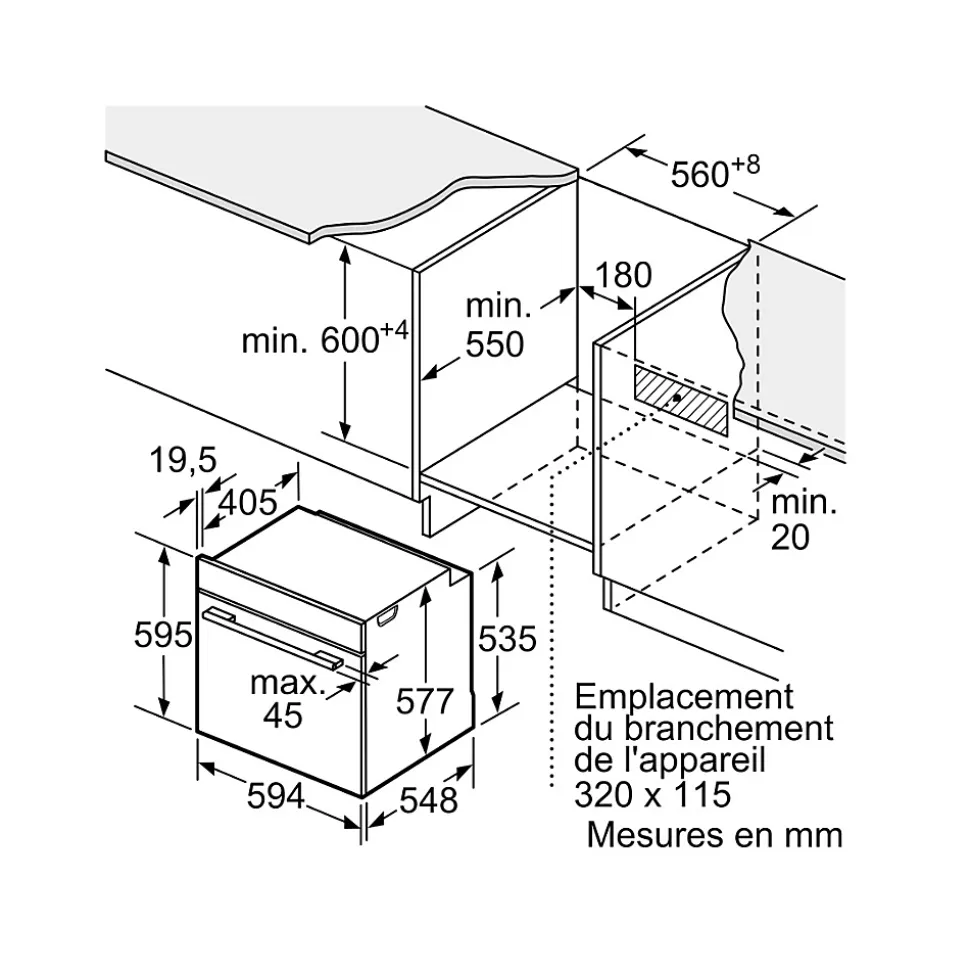Four intégrable multifonction 71l 60cm a+ pyrolyse blanc Bosch – Le four intégrable multifonction Série 8 Bosch HBG7741W1 avec anneau de contrôle digital et écran TFT couleur tactile, la fonction Assist pour la préparation des repas, Air Fry et Home Connect pour contrôler le four depuis l’application. Anneau de contrôle digital : la commande de four la plus simple et la plus innovante. Ecran TFT couleur tactile : contrôle aisé grâce à l’innovant anneau de contrôle digital et l’ écran TFT tactile. Cuisson douce : économise de l’énergie pendant la cuisson et le rôtissage. Assistant à commande vocale : réglez facilement le bon programme. Arrêt automatique : la cuisson s’arrête automatiquement dès que le plat est cuit. 14 modes de cuisson : Hotair 3D, convection naturelle, gril air pulsé, gril grande surface, gril petite surface, position pizza, chaleur de sole, cuisson basse température, décongélation, préchauffage, maintien chaud, air pulsé doux, cuisson douce, air fry. – Type de produit : Four intégrable multifonction.Préchauffage Booster.Home Connect : pilotage et contrôle de votre four à distance.Assistant à commande vocale.CookAssist : recettes préprogrammées.Préconisation de température.Affichage de la température Contrôle optique de la montée en température.Eclairage halogène.Porte abattante.Ventilateur de refroidissement.Horloge électronique.Ecran TFT couleur tactile.Anneau de contrôle digital.Commandes par touchControl.Cavité intérieure en noir diamant.Intérieur de porte plein verre.Porte froide 4 vitres.Très faible température de porte.Faible température de porte lors de la pyrolyse.Divers : Verrou de porte électronique, Sécurité enfants, coupure automatique du four, indicateur de chaleur résiduelle, touche marche, interrupteur au contact de la porte.Nombre de niveaux de rack : 5 unité.Rails téléscopiques en option, pyrolysables.Réglage de