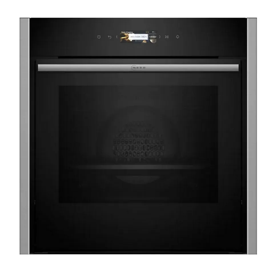 Four intégrable multifonction 71l 60cm noir Neff – Four intégrable multifonction b54cr71n0f de Neff.C’est simple, tout s’affiche !Contrôlez les températures et les réglages en toute simplicité ! Avec l’écran TFT tactile 3,7, gardez un œil en permanence sur vos cuissons. L’affichage haute résolution et le menu intuitif facilitent la navigation pour vous permettre de profiter de tout le potentiel de votre four.Une cuisson homogène sur trois niveaux différents.Des biscuits de Noël qui dorent de la même façon à tous les étages ? C’est possible avec Circo Therm. Grâce à la technologie Circo Therm, vous gagnez du temps et vous économisez de l’énergie en utilisant jusqu’à trois niveaux de cuisson en même temps. Le flux d’air diffuse la chaleur rapidement et de façon homogène. Plus besoin d’attendre la fin de la cuisson du rôti pour mettre le crumble au four ! Avec Circo Therm, vous optimisez vos cuissons et votre organisation.Le seul four pourvu d’une porte escamotable.Avec le système Slide & Hide, la porte de votre four disparaît comme par magie. La porte coulisse en douceur et s’insère sous le four, vous accédez facilement à vos préparations. Plus besoin de vous contorsionner pour assaisonner vos plats ou arroser vos viandes. Et pour refermer le four, la magie Slide & Hide opère à nouveau. Tirez simplement la poignée rotative vers le haut et la porte revient immédiatement à sa place.La dream team du nettoyage réunie dans un four.Votre programme du dimanche, c’est un bon rôti puis le nettoyage du four ? Pas avec l’autonettoyage par pyrolyse. Activez la fonction et transformez les résidus d’aliments en cendres. Tout aussi pratique, l’hydrolyse nettoie votre four en un rien de temps. Ajoutez un peu d’eau et une goutte de liquide vaisselle. Activez le programme hydrolyse. – Type de produit : Four.Type de construction : Encastrable.Système de nettoyage intégré : Pyrolyse +.Volume utile du four : 71 l.Nombre de
