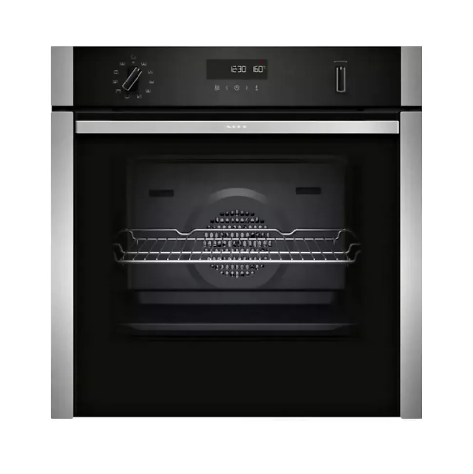 Four intégrable multifonction 71l 60cm pyrolyse + hydrolyse noir/inox Neff – Four intégrable multifonction N50 B6ACH7AN3F de NeffUne interaction agréable : accès illimité grâce à la porte Hide escamotable et à l’autonettoyage pyrolytique.Hide : la porte du four disparaît à l’ouverturePyrolyse et Hydrolyse – Le duo idéal pour un nettoyage parfait : pyrolyse après un usage intensif. Hydrolyse, l’option pour un nettoyage rapide du four.Ecran LCD – Une lecture simple, efficace et claire des paramètres de cuissonCircoTherm : la solution intelligente qui répartit l’air chaud de façon homogène sur trois niveaux à la fois. – Type de produit : Four pyrolyse.Gamme : N50.Mode de cuisson : Multifonction.Nettoyage : Pyrolyse.Programmateur : Oui.Type de programmateur : Electronique EasyClock.Connecté : Non.Puissance totale (W) : 3600.Température maxi (°C) : 275.Divers : Nettoyage pyrolyse + hydrolyse.Nbre de modes de cuisson : 8.Convection naturelle : Oui.Gril : Oui.Type de gril : Ventilé, Grande surface.Chaleur de sole : Oui.Pizza : Oui.Préchauffage rapide : Oui.Préconisation de la T°C : Oui.Autre(s) fonction(s) : Sabbat.Type de porte : Escamotable Hide.Ouverture de la porte : Porte abattante.Porte froide : Oui.Contre porte plein verre : Oui.Nbre de vitre(s) : 4.Type de bandeau de commande : Boutons rotatifs.Type d’éclairage : Halogène.Revêtement de la cavité : Noir diamant.Accessoire(s) inclus : Grille, Lèchefrite pour pyrolyse.Ecran : Oui.Type d’affichage : LCD.Autre : Contrôle optique de la montée en température.Longueur de câble : 1.2 m.Ventilateur de refroidissement : Oui.Sécurité enfants : Oui.Couleur : Inox.Couleur(s) secondaire(s) : Noir.Dim. H x L x P (cm) : 59.5 x 59.4 x 54.8.Encastrement H x L x P (cm) : 58.5-59.5 x 56-56.8 x 55.Poids