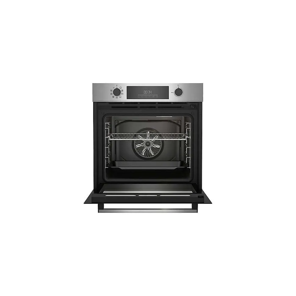 Four intégrable multifonction 72l 60cm a pyrolyse inox Beko – Four intégrable multifonction b300 BBIE12300XMP de Beko.Facilite votre quotidien !La nouvelle cavité est extra lisse pour faciliter le nettoyage et son éclairage, sur la voûte évite d’être ébloui. Le gril est plus large et plus puissant pour dorer parfaitement tous vos plats et les accessoires ont été repensés pour faciliter leur enfournement.Pour une cuisson uniforme !Le puissant ventilateur propulse dans toute la cavité, l’air chauffé par les résistances de voûte et sole, pour un brassage optimal et un résultat de cuisson uniforme.Evitez tout risque de brûlure, même en pyrolyse :Grâce à ses quatre vitres, la porte froide reste à faible température, même en mode pyrolyse lorsque le four atteint 480°C. Idéale lorsque vous avez des enfants en bas âge. – Type de produit : Four.Type de four : Multifonction – Chaleur brassée.Type de pose : Encastrable.Séries : b300.Type de commande : Contrôle mécanique.Type de commande Contrôle mécanique.Système de nettoyage : Pyrolyse.Classe d’efficacité énergétique : A.Nombre de vitres 4.Cons. convection Naturelle 1 (kWh) : 0.99.Puissance totale électrique : 2600 watts.Cons.énergie (conv. forcée de l’air) (kWh) : 0.81.Tension (V) : 220-240 .Fréquence (Hz) : 50 .Type de prise : Européenne.Câble fourni : Standard.Convection naturelle : Oui.Décongélation : Oui.Porte Froide : Porte froide GIFAM.Maintien au chaud : Oui.Contre-porte : Plein verre (amovible).Gradins amovibles : 5.Éclairage intérieur : 1 éclairage (voûte).Type de poignée : Rectangulaire.Type d’ouverture de la porte : Abattant.Décongélation : Oui.Type de Gril : Electrique.Couleur de l’émail : Noir.Cavité principale – Volume utile (lt) : 72.Lèchefrite standard : 1.Grille standard amovible : 1.Nombre de fonctions : 9
