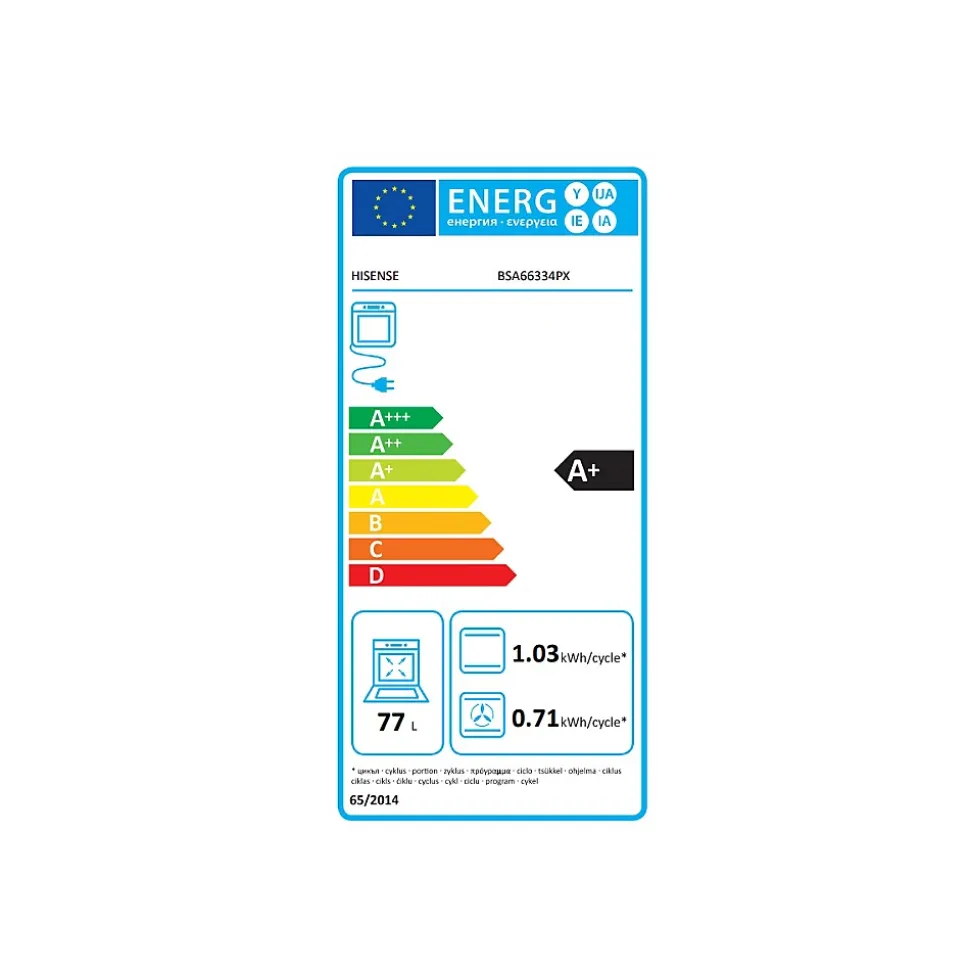 Four intégrable multifonction 77l 60cm pyrolyse inox Hisense – Four intégrable multifonction BSA66334PX de Hisense.GRANDE CAPACITÉ :Avec l’une des plus grandes capacités du marché, cuisinez de savoureuses préparations même sur plusieurs niveaux.VAPEUR ASSISTÉE :Donnez du croustillant et du moelleux à vos aliments en cuisinant à la vapeur. 130 ml d’eau pour 2h30 de cuisson.PROGRAMMES AUTO :Profitez de 22 recettes préenregistrées ! Saisissez le type de plat et le poids et votre four se charge du reste ! – Type de produit : Four pyrolyse.Mode de cuisson : Multifonction.Nettoyage : Pyrolyse.Classe énergétique : A+.Puissance maximale : 3500 W.Alimentation : 220V-240 V / 50/60 Hz.Consommation : 0,71 kWh (Chaleur tournante / brassée), 0,97 kWh (Convection naturelle).Programmateur : Oui.Connecté : Non.Modes de cuisson et fonctions : 23.Vapeur assistée : Oui.Programmes automatiques : 22 recettes.Préchauffage rapide (200° C en 5 min) : Oui.AirFry (fast-food sain) : Oui.Mode Pizza (6 min à 300° C) : Oui.Mode Surgelés : Oui.Cuisson lente (140°-220° C) : Oui.Cuisson par étapes : Oui.Modes de cuisson et fonctions 23.Vapeur assistée Oui.Programmes automatiques 22 recettes.Préchauffage rapide (200° C en 5 min) Oui.AirFry (fast-food sain) Oui.Mode Pizza (6 min à 300° C) Oui.Mode Surgelés : Oui.Cuisson lente (140°-220° C) : Oui.Cuisson par étapes : Oui.Pizza : Oui.Grille : 1.Plaque à pâtisserie émaillée : 1.Plat de cuisson perforé émaillé : 1.Lèchefrite profonde émaillée : 1.Sonde thermométrique : Oui.Glissières en fil : 1 paire.Glissières télescopiques : Sur 2 niveaux extractibles aux ¾ (non pyrolysables).Réservoir d’eau : 130 ml.Autre(s) mode(s) de cuisson : Vapeur assistée, AirFry (fast-food sain), Mode Surgelés, Cuisson lente, Cuisson par étape.Surface de la plus