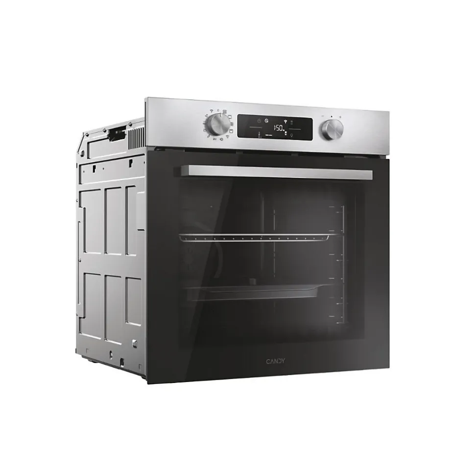 Four intégrable multifonction 78l 60cm pyrolyse Candy – Four Encastrable Pyrolyse CA6N3B3YTX de Candy. Préparez vos plats préférés avec précision grâce au four Candy C-BAKE 600 CA6N3B3YTX et sa cavité XXL de 78 L. Doté de la chaleur tournante, il assure une cuisson homogène et rapide sur plusieurs niveaux sans mélange de saveurs. Son système de nettoyage pyrolyse élimine efficacement les résidus alimentaires pour un entretien sans effort. Son programmateur Smart View UX et ses commandes semi-sensitives offrent une navigation fluide et intuitive. Profitez de la connectivité Wi-Fi et Bluetooth avec l’application hOn qui propose plus de 300 recettes automatiques et un contrôle à distance. La porte froide à 4 vitres garantit une sécurité optimale, même en cas de températures élevées. Sa classe énergétique A++ assure une consommation réduite tout en maintenant des performances optimales. Avec 10 fonctions de cuisson, dont chaleur pulsée, supergril et mode éco, adaptez vos préparations selon vos besoins. – Type de produit : Four Encastrable.Type de four : Four électrique.Capacité nette du four : 78 L.Classe d’efficacité énergétique (ancienne) : A++.Consommation d’énergie (conventionnelle) : 0.99 kWh.Consommation d’énergie (convection forcée) : 0.54 kWh.Nombre de fours : 1.Taille du four : Grand.Grill : Oui.Cuisson par convection : Oui.Fonction de cuisson de pizza : Oui.Autonettoyant : Oui.Méthode de cuisson au four : Multitech.Le mode ECO : Oui.Quantité de programmes de cuisson : 12.Type de nettoyage : Hydrolytique + Pyrolytique.Placement de l’appareil : Intégré.Type de commande : Rotatif, Tactile.Écran integré : Oui.Position de contrôle : Devant.Couleur de la poignée : Acier inoxydable.Boutons de couleur : Acier inoxydable.Type d’écran : LED.Emplacement charnière de porte : Bas.Matériau de la porte : Verre.Porte à fermeture à amortissement :