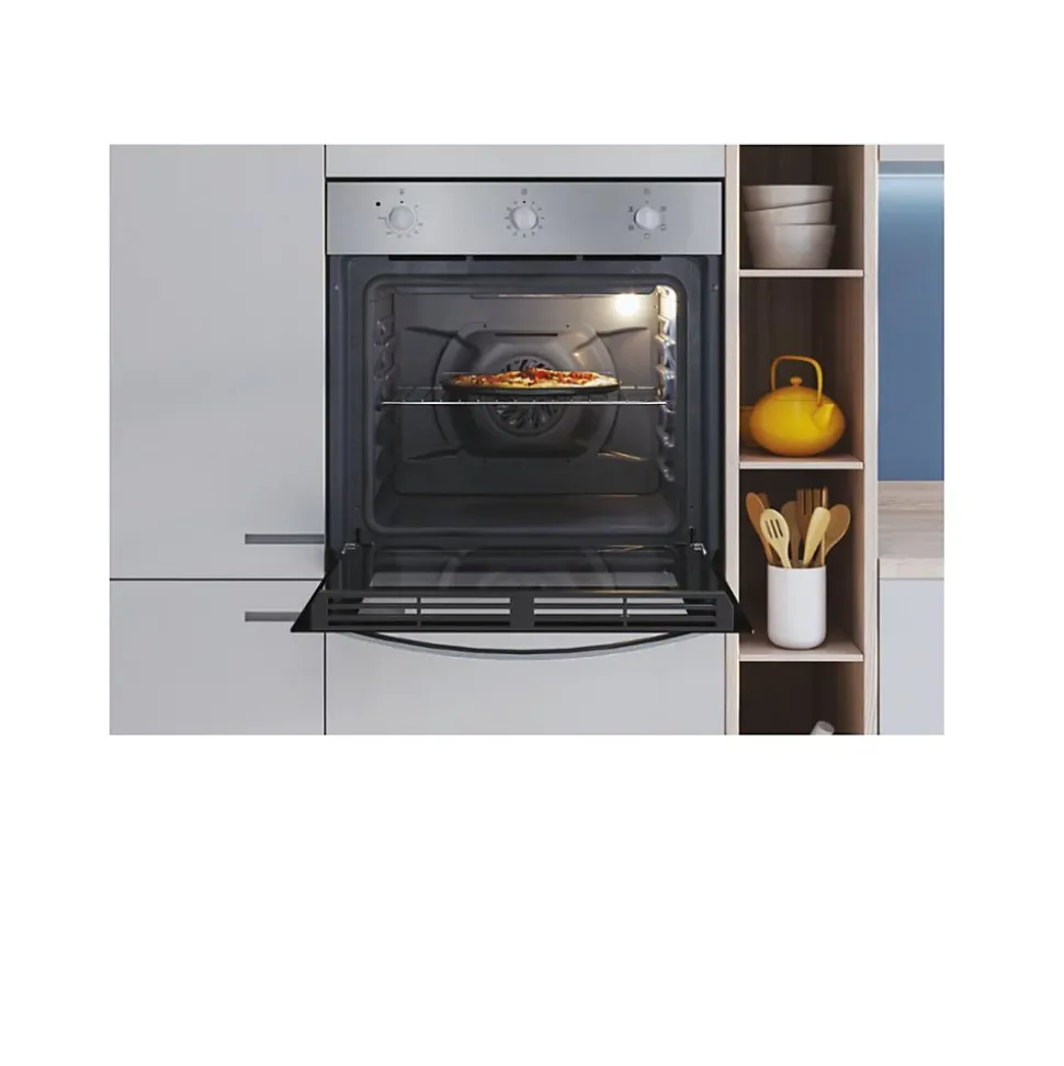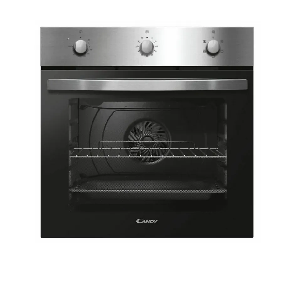 Four intégrable multifonctions 65l 60cm acier Candy – Si vous pensez rénover votre cuisine, c’est idéal le four de Candy FIDC X502. Un design épuré qui s’adapte parfaitement au style de votre cuisine.Four encastrable multifonctions (gril, convection naturelle, chaleur tournante).Modes de cuisson : Chaleur tournante, Convection naturelle, Cook Light, Gril. – Type : Four à convection.Type de pose : Encastrable.Classification énergétique: A.Type d’énergie : Electrique.Capacité : 65 L.Nombre de fonctions : 5.Modes de cuisson : Multifonctions (gril, convection naturelle, chaleur tournante).Conso. convection naturelle : 0.98 kWh (par cycle).Conso. convection forcée : 0.78 kWh.Puissance de raccordement : 2100 W.Informations électriques : 220-240 V • 50 Hz • 16 A.Caractéristiques : Lumière intérieure.Type de commande : Plaque Tournante.Type de porte : Tempérée.Mode de nettoyage : Manuel.Produit à brancher: Oui.Type de contrôle : Mécanique.Matériau de la porte : Verre.Câble électrique : 1.4 m.Accessoires fournis : 2 grilles, 1 lèchefrite.Grille : 2.Cavité : 1.Type de prise : Prise EU.Couleur : Acier.Largeur : 60 cm.Dimensions du produit : 59.5 x 59.5 x 56.8 cm.Poids net (kg) : 24.1.