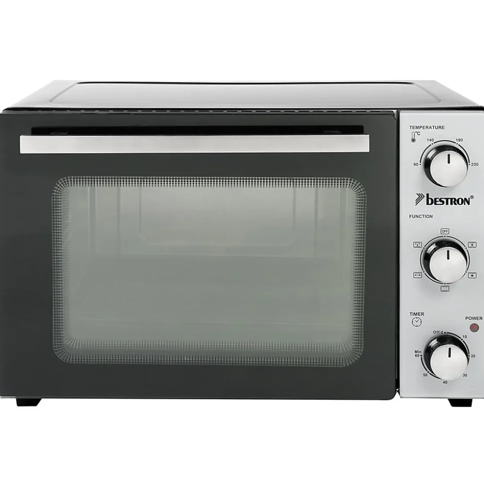 Four multifonction 31l 1500w Bestron – Avec une puissance de 1 500 W, une température réglable jusqu’à 230 ° C et une circulation d’air chaud, le four à gril AOV31PS de la marque Bestron est un four électrique fiable ainsi qu’une rôtissoire pratique pour la viande et la volaille.Il est également idéal pour les grillades, cuisiner et griller de délicieux plats en un rien de temps !La fonction de rôtissoire est pratique lorsque vous souhaitez préparer un poulet croustillant et savoureux à la maison. – Puissance : 1500 WEspace de four environ 31 litres, avec éclairage intérieurBoîtier bien isolé pour une faible chaleur de surfacePorte en verre à double paroi avec poignée thermorésistante et 3 positions de porteTempérature réglable jusqu’à 230°CInterrupteur à 6 positions pour:- Chaleur supérieure + Chaleur inférieure + Air chaud- Chaleur supérieure + Air chaud- Chaleur supérieure + Chaleur inférieure- Chaleur supérieure + Rôtisserie- Chaleur supérieure + Chaleur inférieure + Air chaud + Rôtisserie- Off (désactivé)Minuterie de 60 minutes avec signal de fin, s’éteint automatiquementVoyant lumineux4 éléments de chaleur en acier inoxydableAvec une pierre à pizza (diamètre 30,5 cm) pour une cuisson authentique de pizzas croustillantesRôtisserie pratique pour la viande et la volailleAvec grille de gril, plaque de cuisson émaillée et poignée de retrait pratique3 hauteurs de grille différentesFacile à nettoyerDimensions intérieures (L x P x H) : 36 x 33 x 26 cmDimensions extérieures (L x P x H) : 51 x 40 x 33,5 cmPoids : 11.18 kg